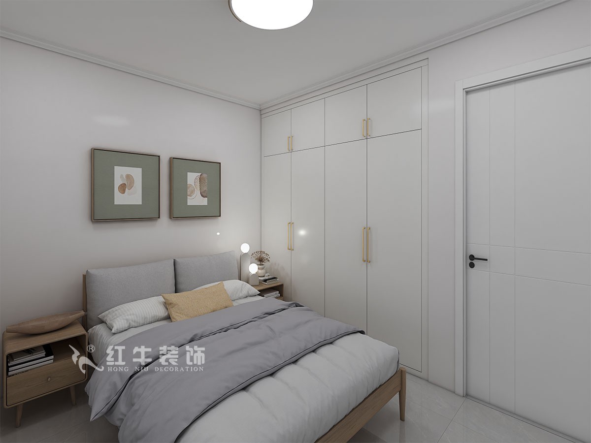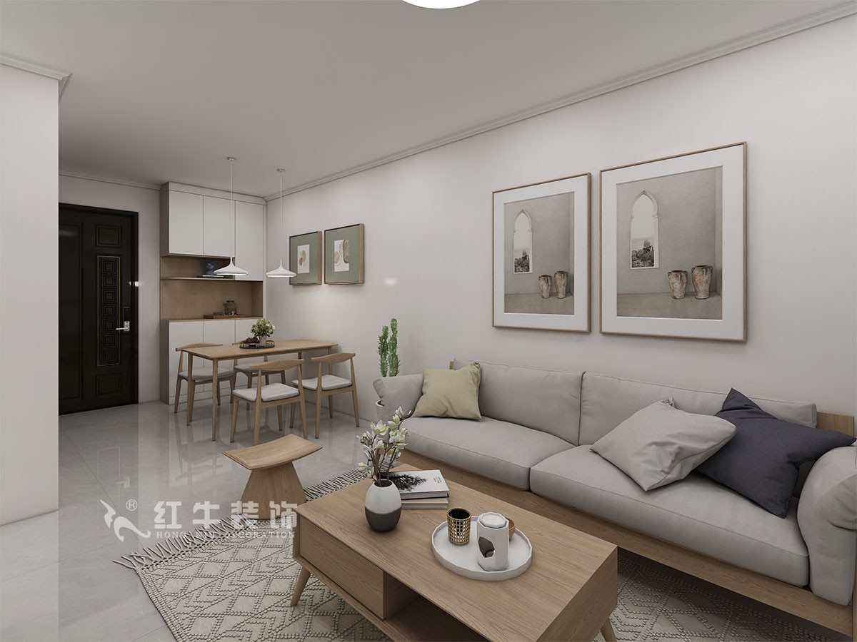 本案簡約,通過業主溝通之后,把北面儲物間墻體跟北陽臺打通,打通后成為獨立的書房。南次臥為了避免對著衛生間門改動門了位置。室內整體色彩偏于原木色,整體才能形成樸素的自然風格。在家具裝飾方面選擇簡單大方、清新自然。