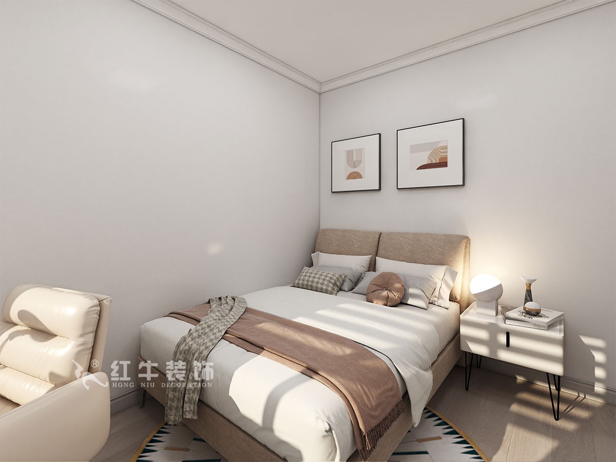 此案主要是養老居住,在舒適度上要求比較高,臥室是整套房子中最私人也是最體現出溫馨休閑感的空間,在設計時體現出靜謐舒適的感覺,并且與其他空間明顯的區別。改變廚房門洞的位置,廚房光線就能更好的進到門廳,衛生間也能單獨一個區域。然后又把兩個房間的門換了位置,把門洞口的面積節省下來,也顯得更規整。整體現代簡約風格的設計,搭配上顯眼的綠色植物讓整個空間呈現出一種生機勃勃的自然美。
