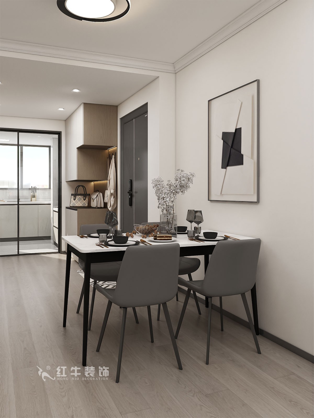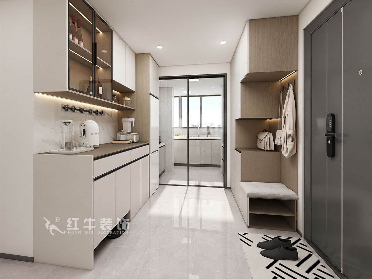 房子規整,沒有太多需要調整的結構。衛生間的門方向的調整,增加了衛生間功能的利用率。進門餐邊柜,鞋柜,功能齊全。
