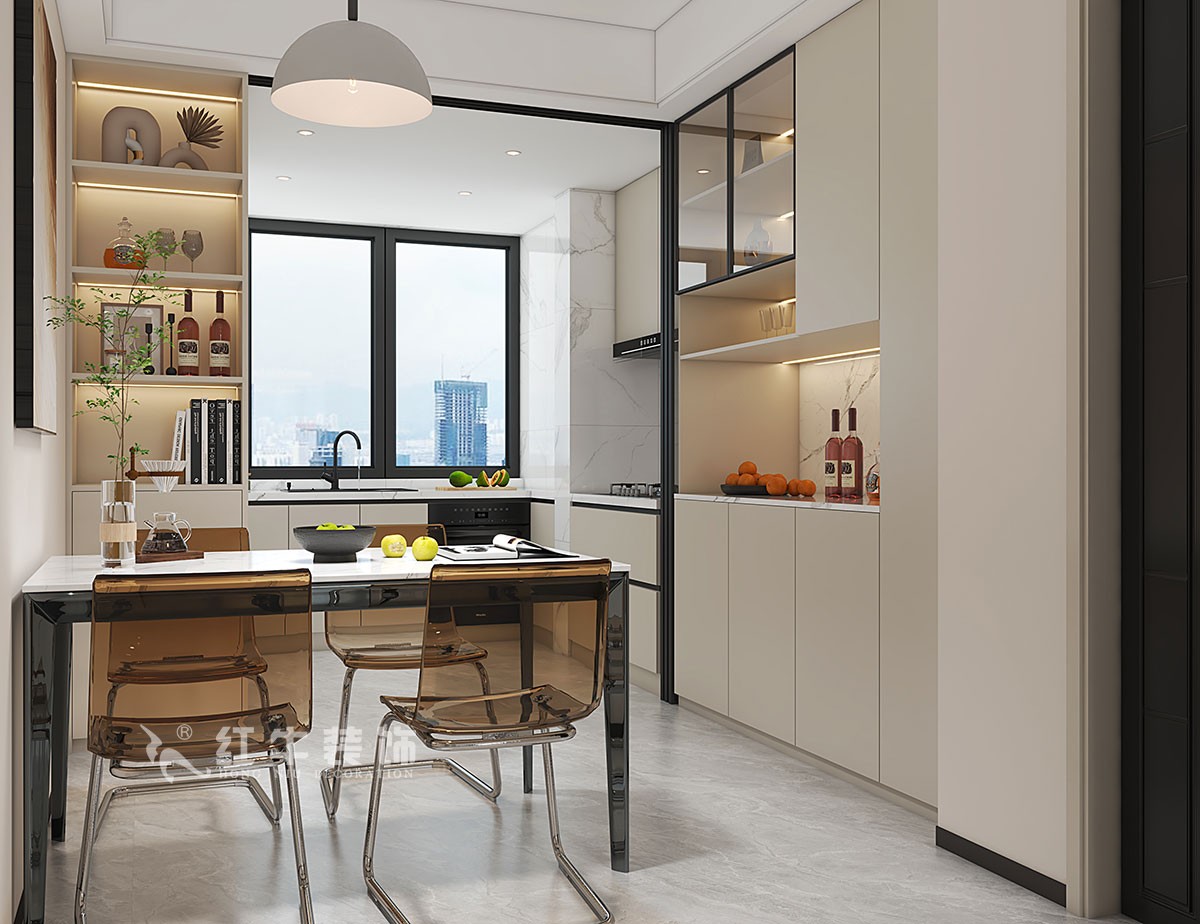 客餐廳空間很規整,通過細節的處理打造輕松舒適的現代風居家環境。