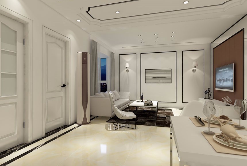 本項目整體風格為現代簡約,總體為簡單大方的線條及裝飾,多以功能性多元化設計為主,拋開所有繁復的裝飾,回歸真實簡單溫馨的都市色彩。設計元素:簡單、環保、舒適、大方。房屋的主人為年輕的夫婦,本案的設計主題以“簡約、環保”為中心,利用柔和的色彩塑造溫馨舒適的空間。