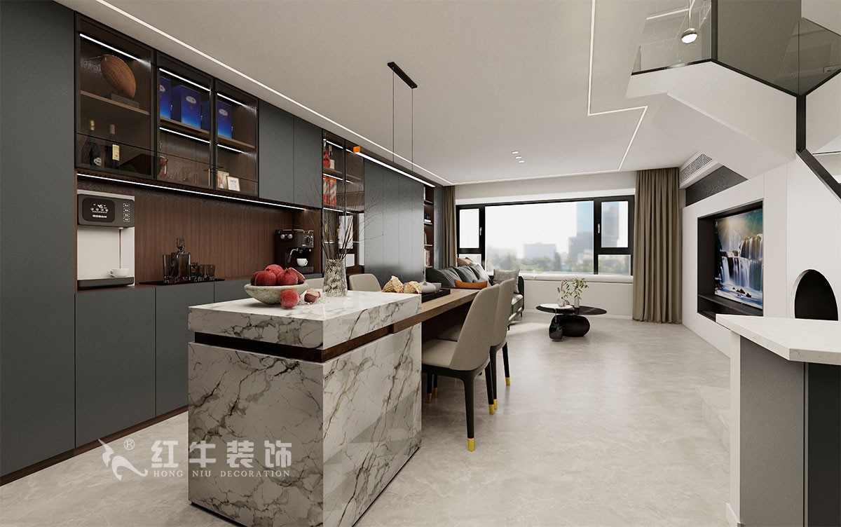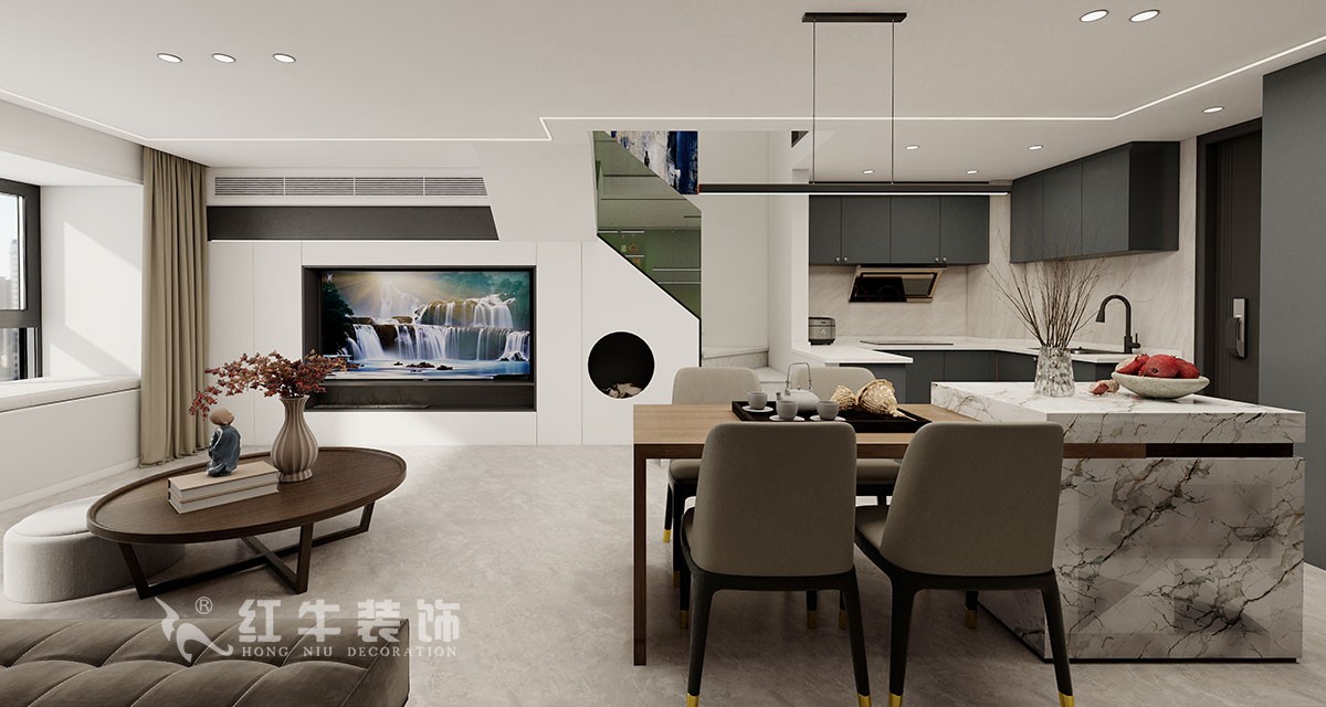 Loft戶型,空間布局上,注重利用有限的空間,例如,開放式廚房和餐廳一體化設計,顯得空間整潔有序,還能讓整個空間更加開闊。