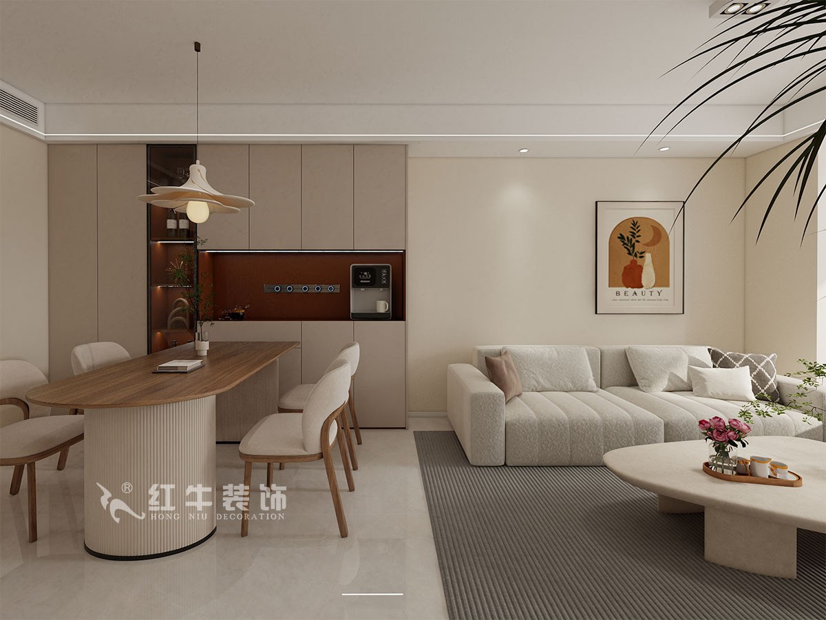 本方案是圍繞奶油風格為主題,奶油色裝修中,多強調溫潤的質感。地面裝飾多選用地板或啞光地磚,使空間上下色調由淺至深,讓居家環境沉靜又溫柔,和諧搭配整體空間氛圍。家中當然少不了一點綠。選用淺色調的花束或是淺綠色的細葉植物,少量點綴即可點亮空間,增加精致感。干凈利落地講述了一個關于家的故事,給家以精致、溫暖的生活氣息。當然,除了滿足正常的生活功能外,展現一個家的美貌必不可少。白凈的基底下,柔和的色彩,利落的線條,都讓這里輕松而美好。