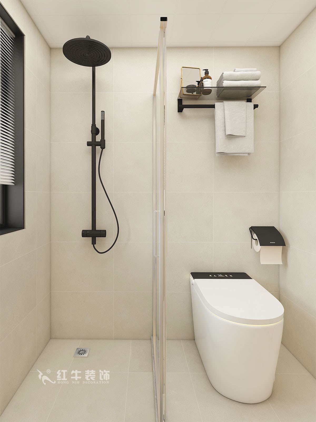衛生間說明:整體色彩搭配干凈、大方,選擇大尺寸淺灰色瓷磚上墻,氛圍感溫馨感滿滿。