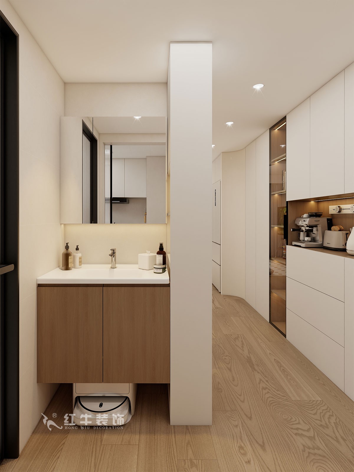 衛生間說明:干區選擇整體色彩搭配干凈、大方,選擇大尺寸米色瓷磚上墻,氛圍感溫馨感滿滿。