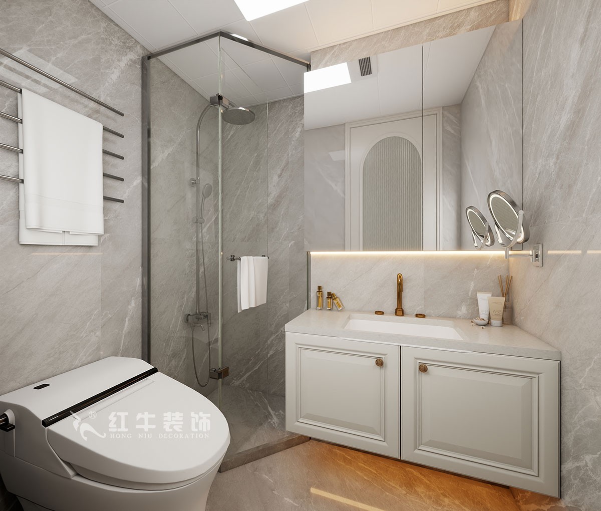 主材品牌:L&D瓷磚、圣象地板、森尚木門、開來櫥柜、法恩莎潔具、奧普吊頂