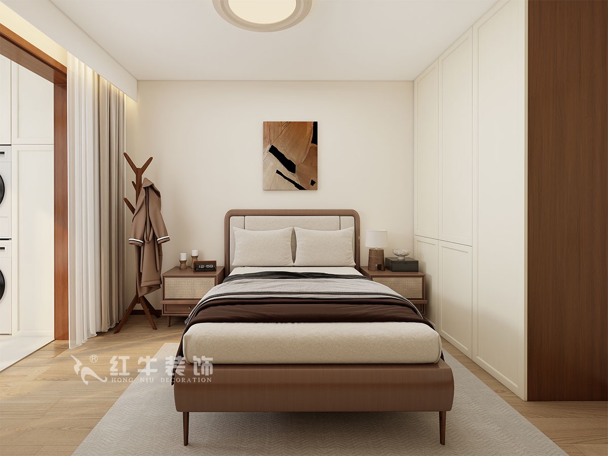 整體裝修簡潔明快,沒有過多的裝飾,增加了入戶的儲藏柜,小臥室以儲藏功能為主,兼顧了客房功能。