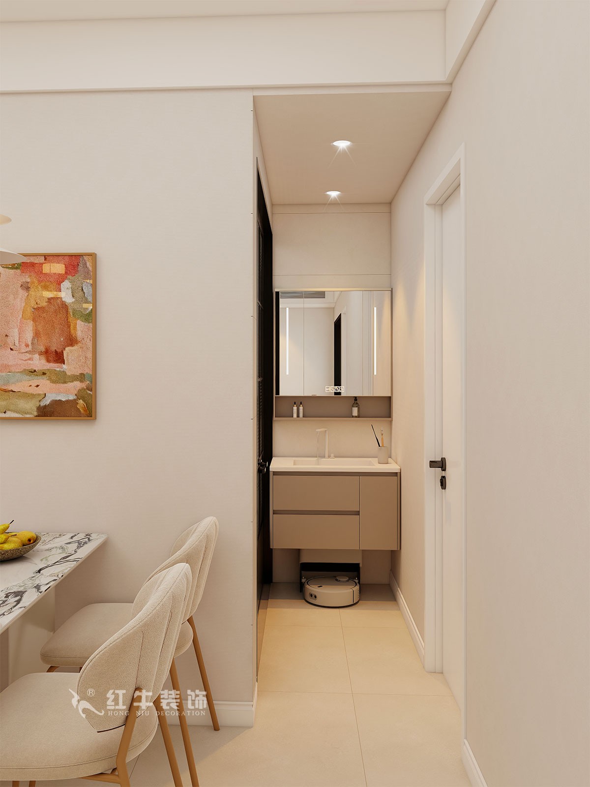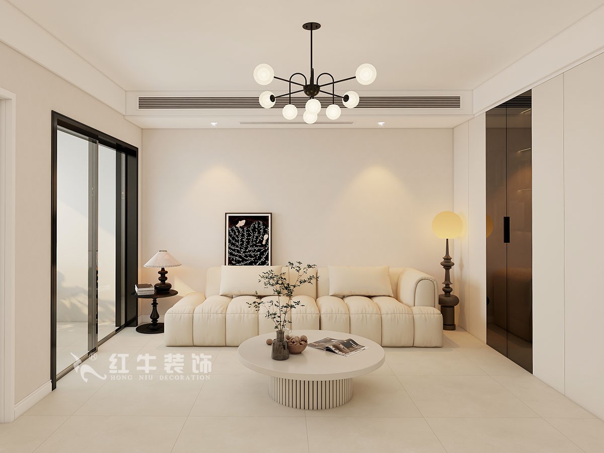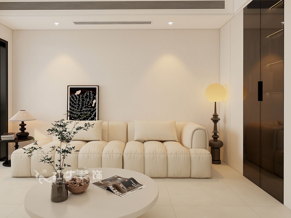 材質選擇:地面通鋪柔光磚,墻面使用乳膠漆,選擇線條簡潔的家具,如沙發、茶幾、餐桌椅等,搭配復古燈具、裝飾畫和綠植,增添藝術氣息。