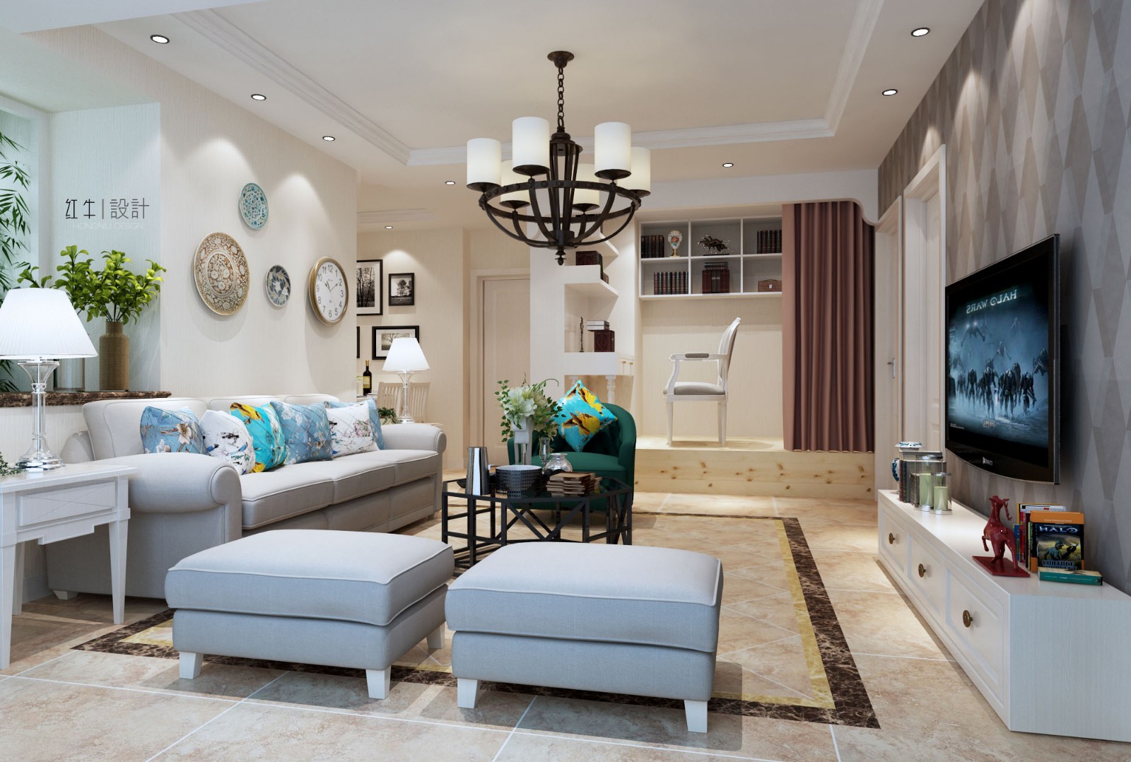 本套方案在滿足功能實用的前提下對原始房型結構進行了局部的改造及布局,客戶想變把原二室改成小三房,這樣我們把原客廳跟小房間進行了對調在客廳一角增加了一個小書房。以通透性、實用性、舒適性為主要設計思路。在設計中并沒有不變的俗和雅,關鍵在于對色彩的準確把握冷色是讓人內心感覺平靜的色調,可以中和暖色的輕快感。