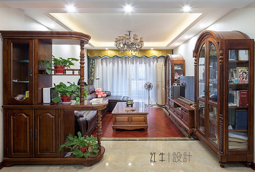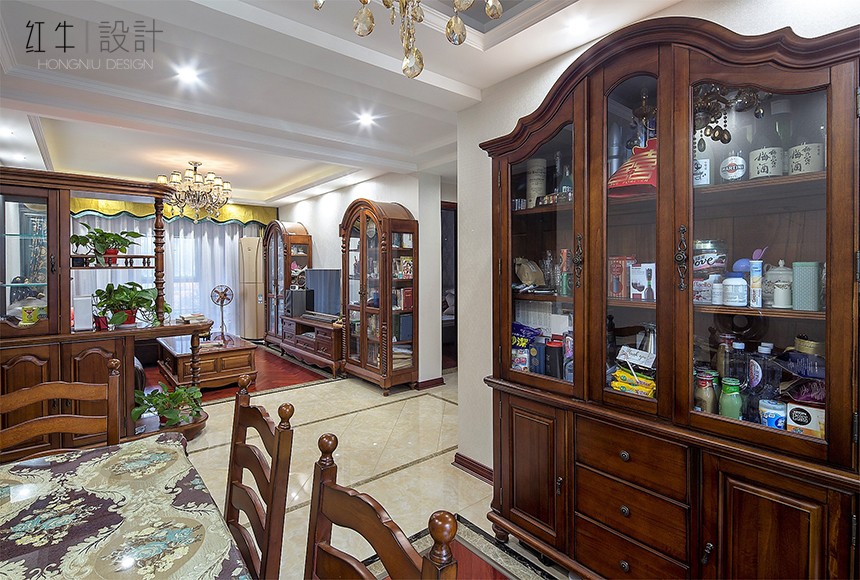 3.方案整體以深色家具為主,整體以小美式為主。后期用軟裝,家具整體搭配,制造出了一個舒適溫馨的小家。
