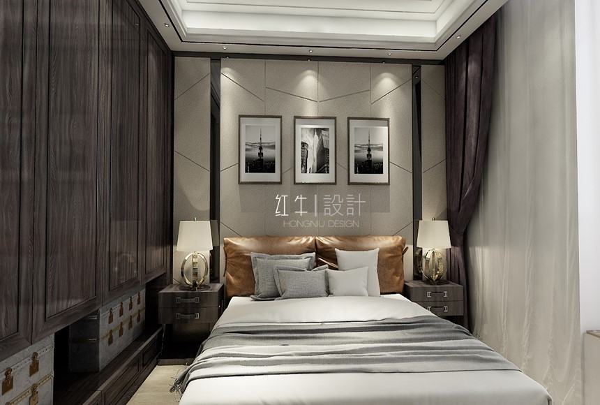 用現代簡約設計手法來鋪陳空間,大面的落地窗擁有極佳的視野,灰色調的運用賦予了空間獨特的雅韻和品質感。經典的格紋透露出些許英倫情調,木飾面配灰色的墻壁,地面大理石選用,讓整個空間散發出穩重質樸的氣質。各式藝術品擺件以及現代的藝術抽象畫透漏出空間不拘一格的時尚品味。