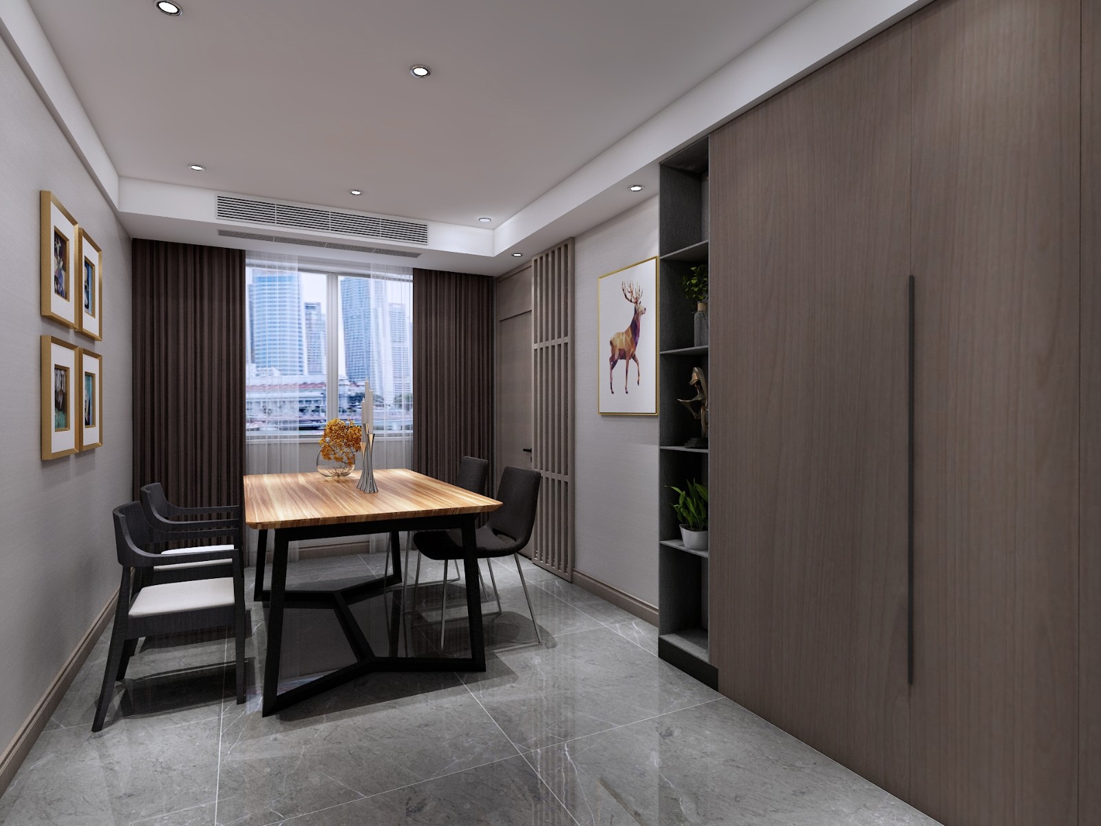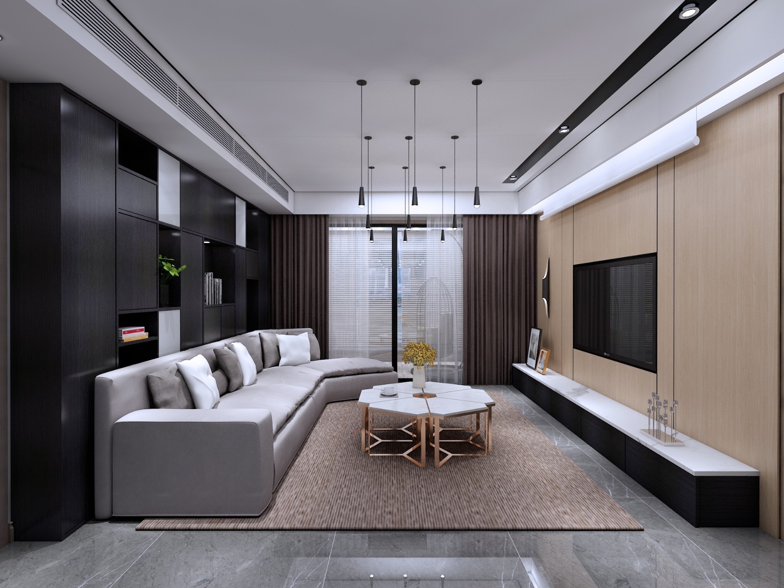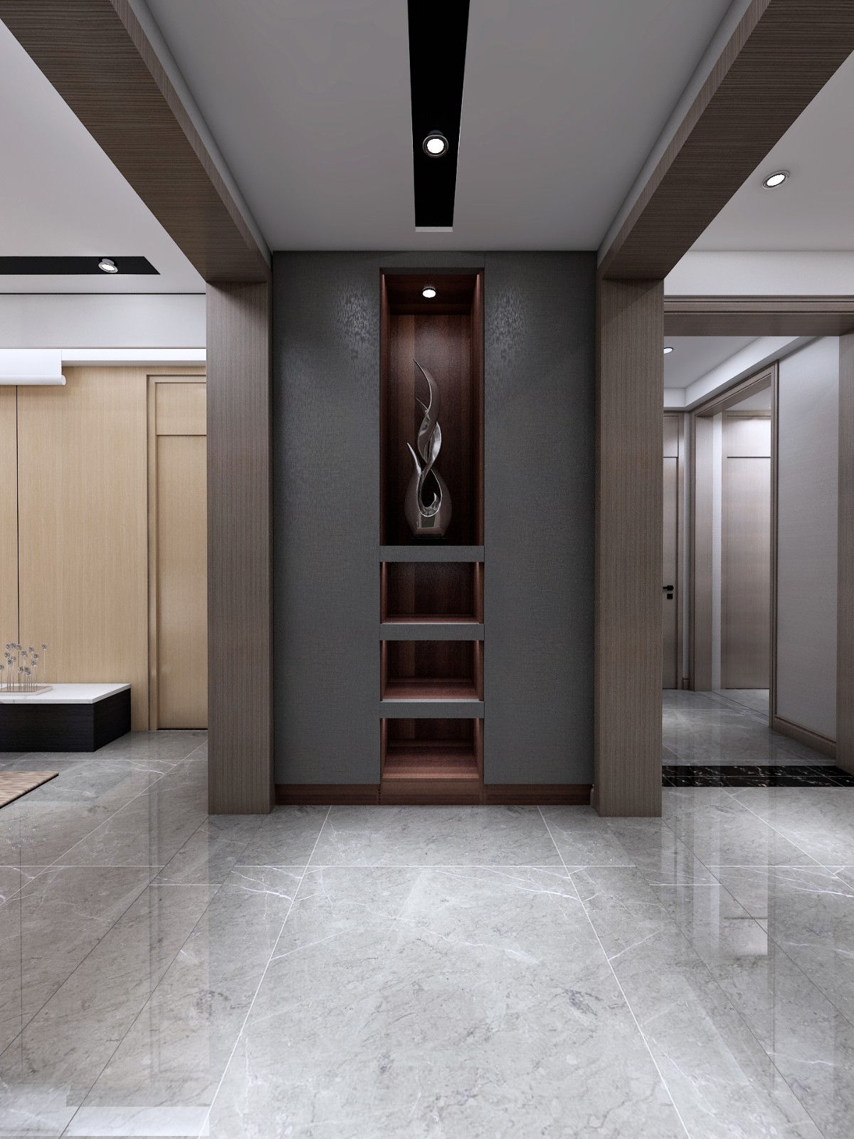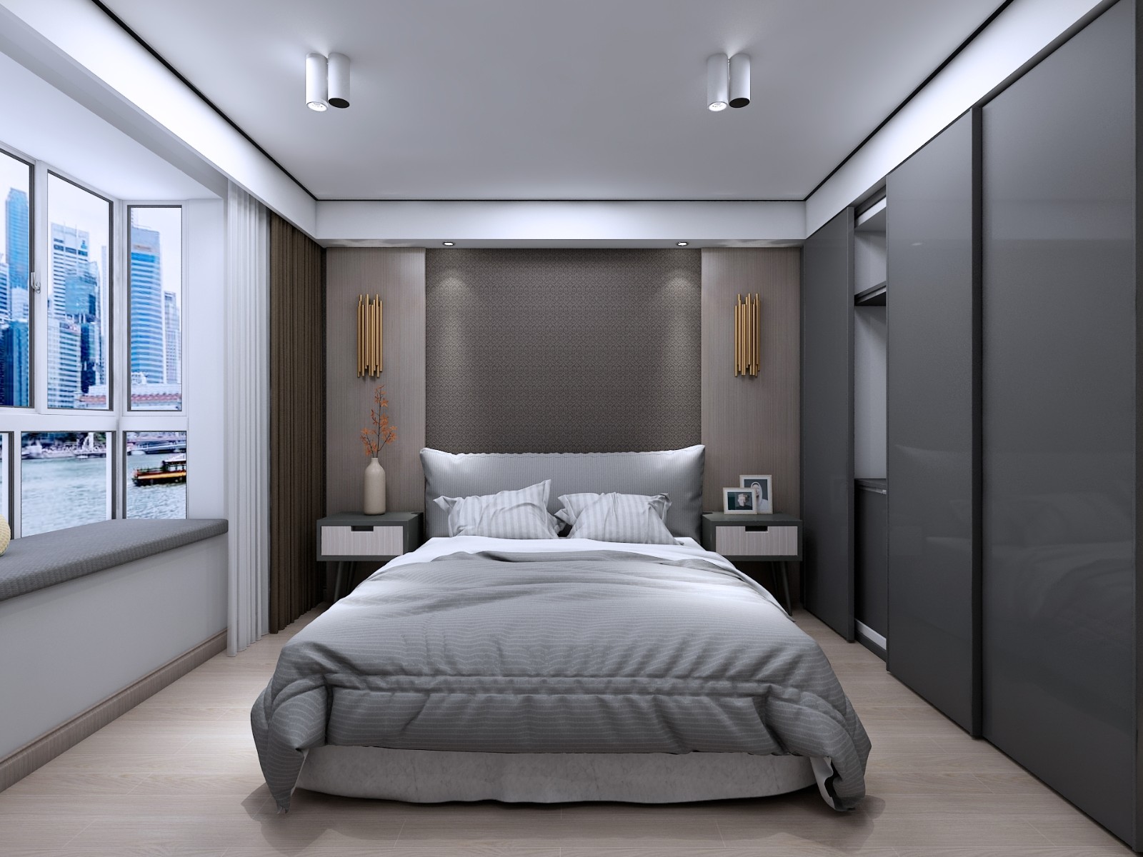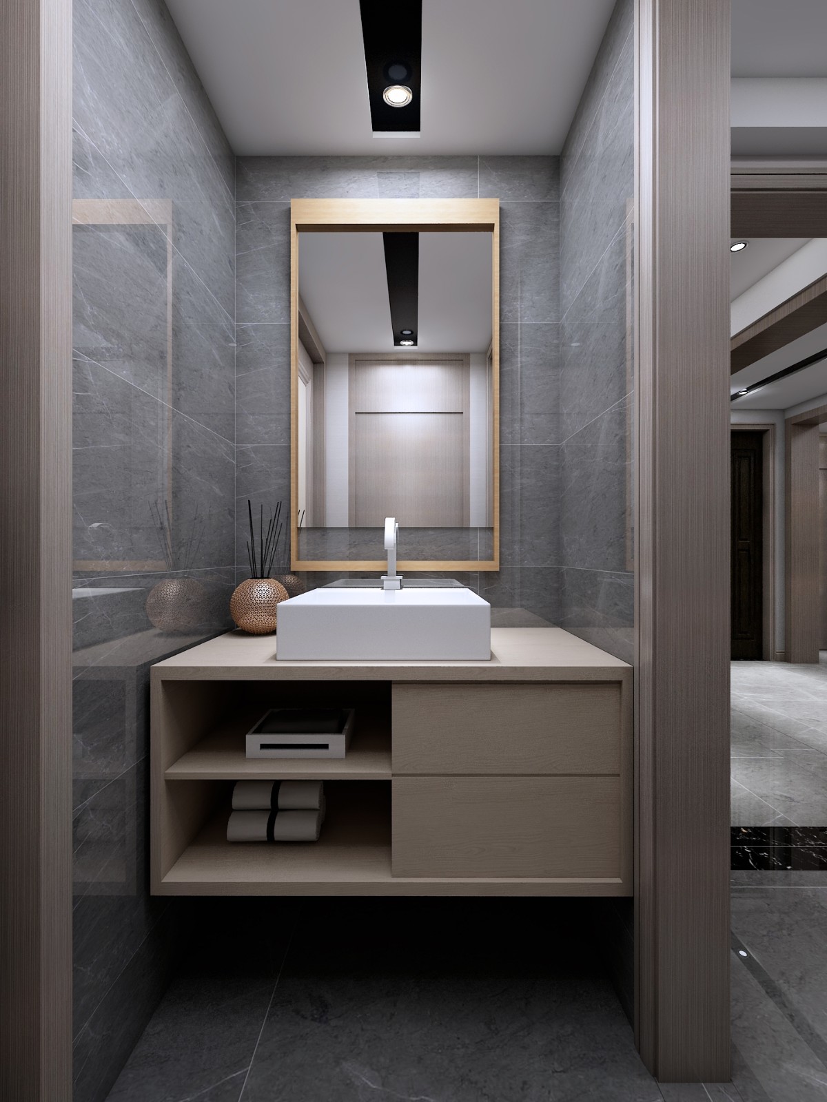 此案采用輕奢港式風(fēng)格,主色調(diào)暗色為主,大面積木飾面的使用增加空間的層次感,使得原先并不大的空間變得豐富,大面積儲(chǔ)物空間也滿足生活需求,輕奢比奢侈更加接近于生活,同時(shí)也映襯主人的品味