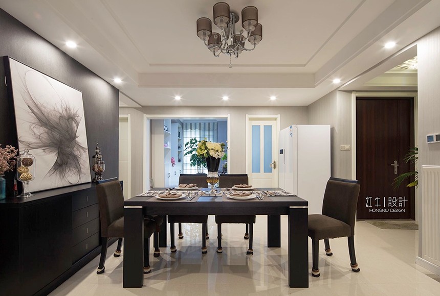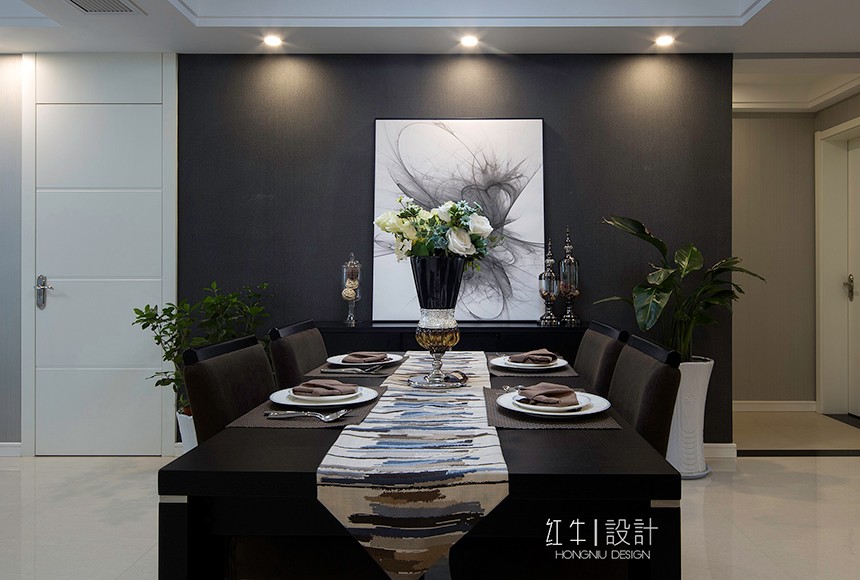 “寧動”設計主題即為“寧靜中的舞動”來源于客戶對裝修簡約而不簡單的要求,營造一種空間氛圍,體現主人公的氣質與生活品質。設計氛圍定位時,避免了過于現代夸張的居家風格,而從簡約之美的表達方式和質樸入新的自然內在著筆。選擇了簡潔的手法和明亮的色調,同時采用了深淺的對比,陳設軟裝上融入了現代簡約元素,營造出富有設計感的空間,更具有了深厚的文化內涵。金屬飾品的陪襯,為空間營造時尚摩登的韻味。整體基調以灰色與深色為主,又無形中演繹出一種精英人群生活的品質感。在經過很長一段后仍然具有耐看的感覺。書房內巨型的白色抽象波紋窗簾吸引來賓視線,在這里舒適、黑白分明的創建了清晰的視覺框架,營造出非凡的生活品味。空間中的藝術性是感覺的提升,同時也是空間氣質的表達,那是一種韻味,為空間增加一分耐人尋味的內涵和附加價值。這不僅僅是對藝術品的追求,更是對空間藝術性的把控。
