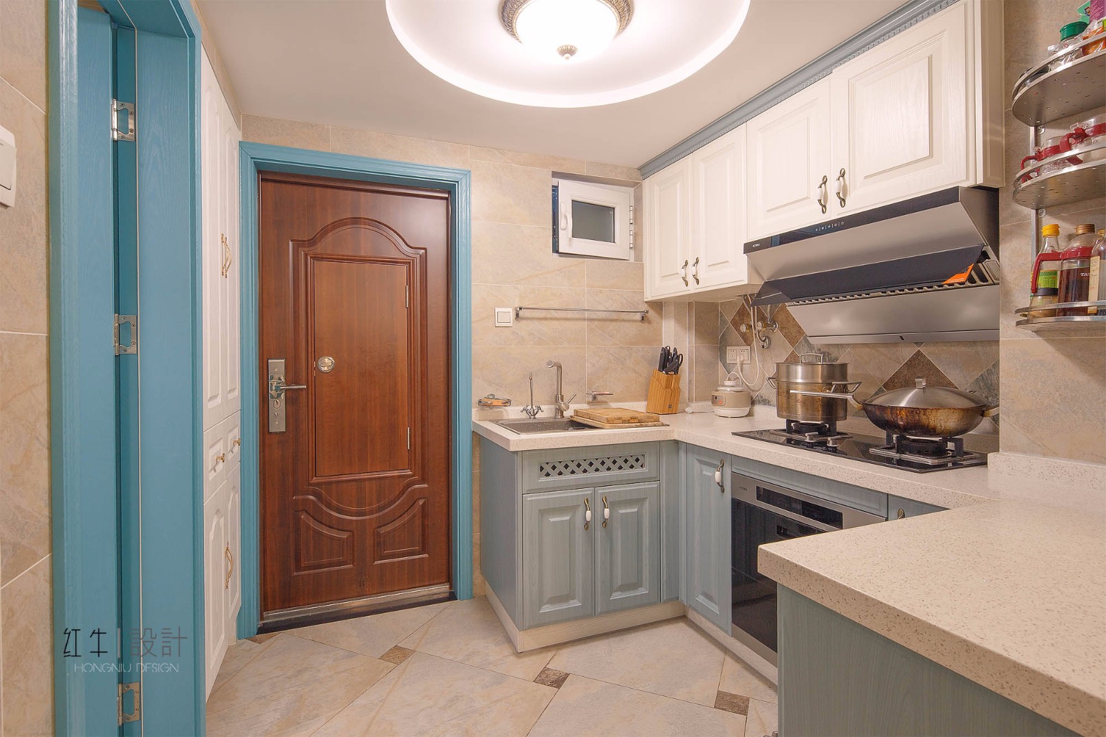 本案戶型面積不算大,作為三口之家來(lái)用,業(yè)主對(duì)生活品質(zhì)的要求頗高。本案為地中海風(fēng)格,通過(guò)弧度的造型和大海藍(lán)色的色系相融合,利用仿古石材,做舊木作,再配以仿古麻繩,海星等軟裝的搭配,把風(fēng)格來(lái)體現(xiàn)。通過(guò)改造衛(wèi)生間的墻面,把鞋柜空間納入,U形櫥柜,開(kāi)放式廚房的設(shè)計(jì),把空間很好的利用。