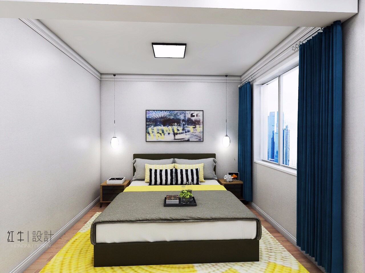 最后就是床的部分,床邊鋪上了軟軟的地毯,可以想象,光腳踩在上面,一定極為舒適。床頭安裝了兩盞吊燈,不僅能解放出桌面空間,還能提升了空間格調。背景墻上的裝飾畫彌補了墻面的空曠。