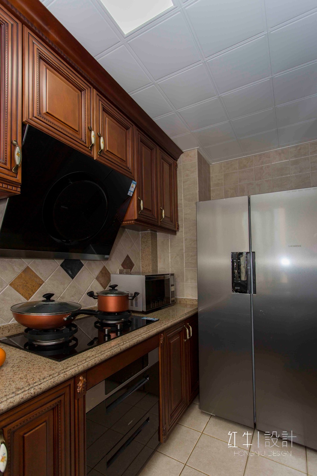 關注細節可以發現,廚房柜門的把手都是復古樣式的。此外,墻磚采用斜鋪的方式,視覺效果很不錯,加上點綴了一些不同顏色的墻磚,趣味十足。