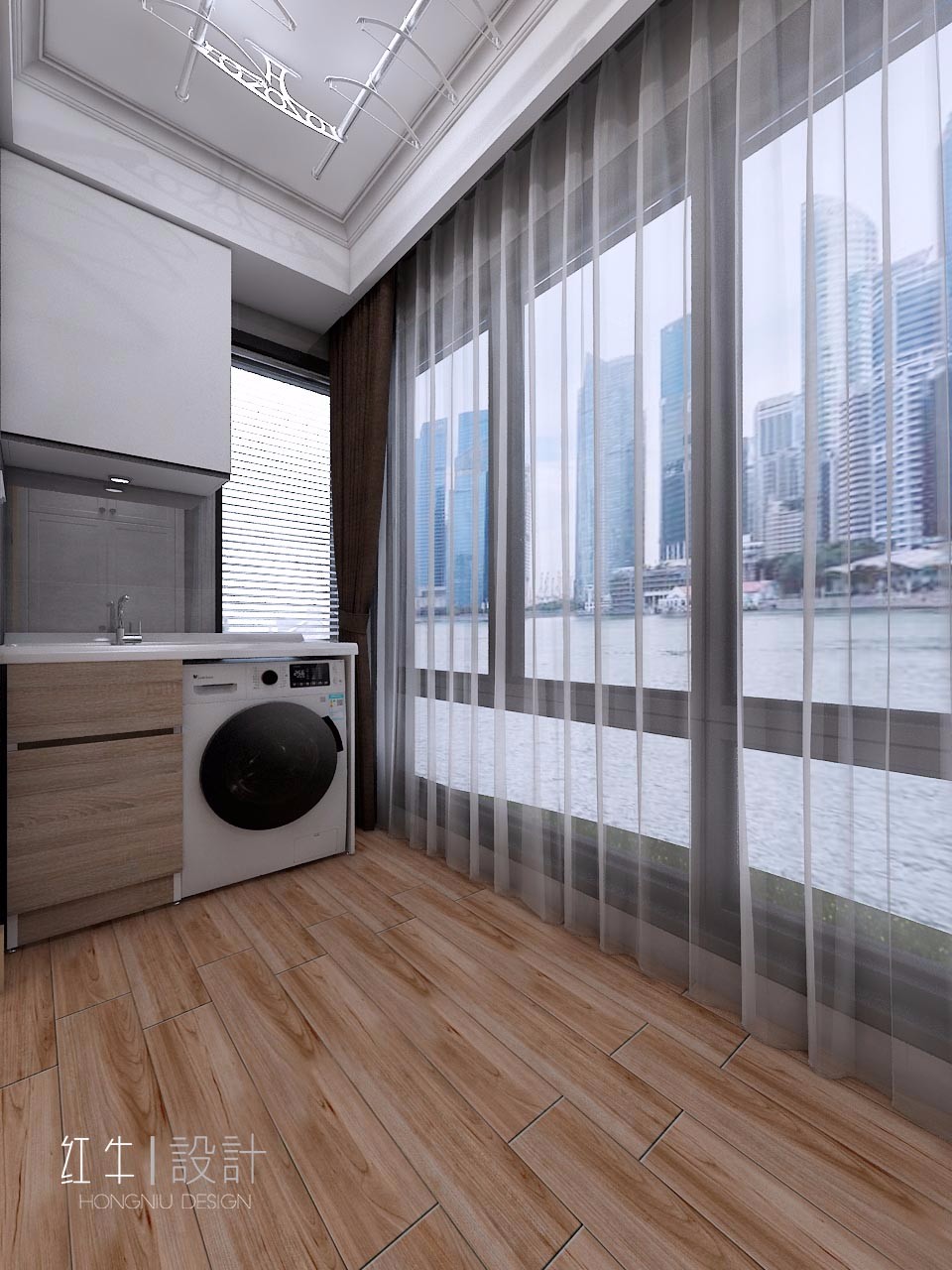洗衣機放在陽臺,洗衣晾衣一氣呵成,不用為了晾衣服跑來跑去。木質(zhì)地板很有溫馨質(zhì)感。