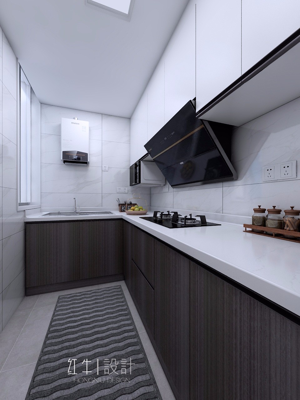 棕褐色的地柜與白色吊柜對比鮮明,體現(xiàn)了層次美。