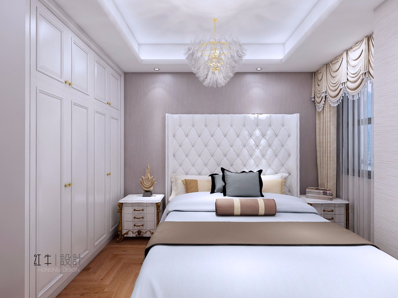 次臥中,窗簾、窗幔的配色,為居室增添一絲華麗感,使整個空間看起來大方典雅。