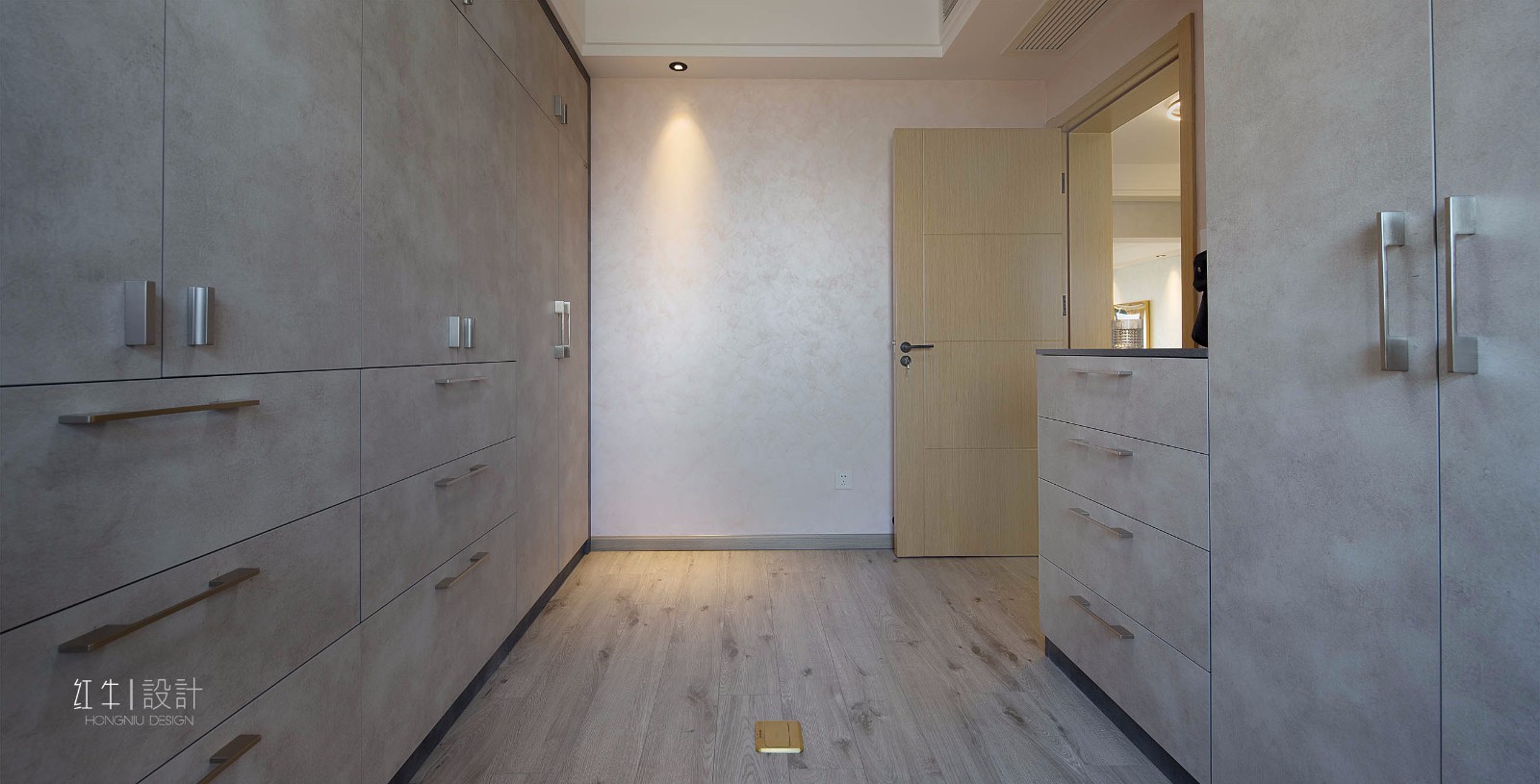 這是專門(mén)的衣帽間,衣柜風(fēng)格一致,充滿和諧之美。
