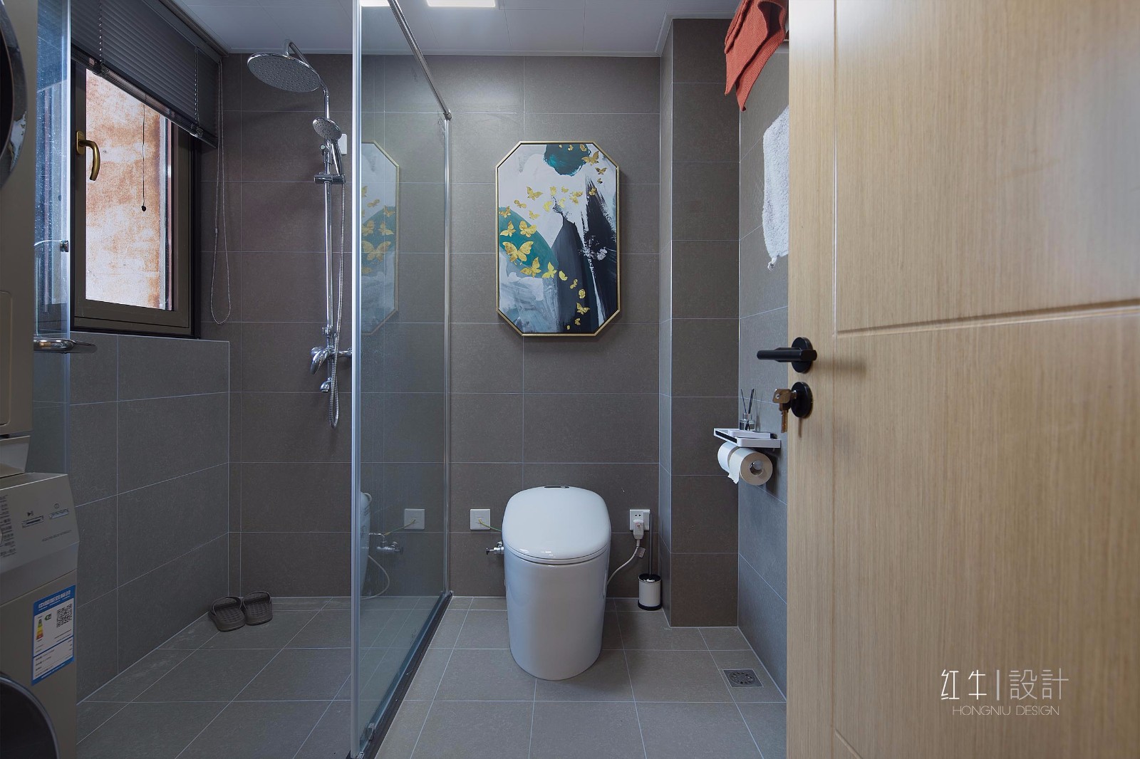 入墻式馬桶設(shè)計(jì),視覺(jué)上衛(wèi)生間空間變大,再搭配上裝飾畫(huà),顏值頗高。
