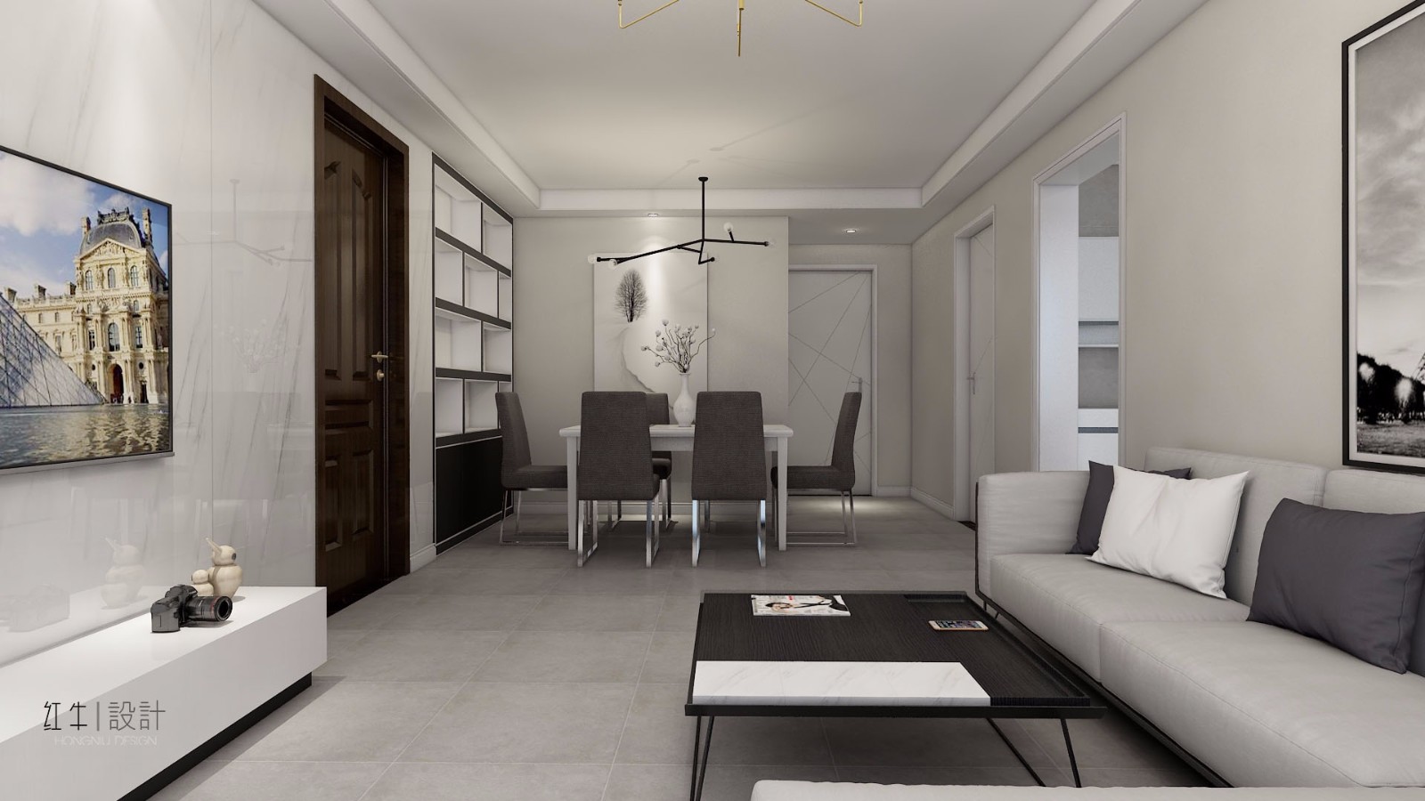 本案業主喜歡后現代風格,很中意白色和灰色,各個空間都能體現出這種基調。