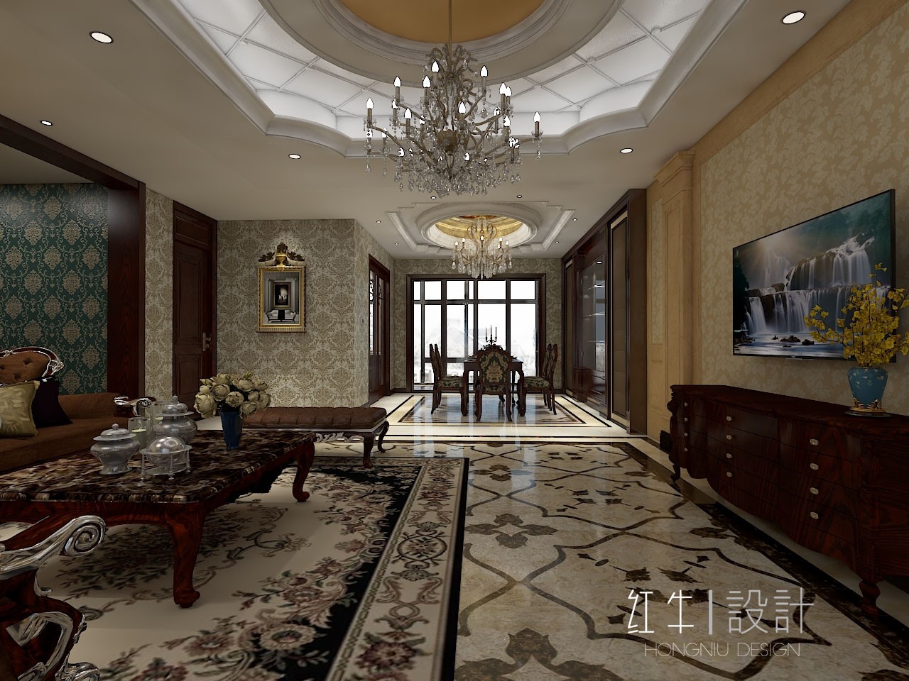 整體風格的定位為歐式新古典,以低調的奢華為主,在石材的選擇上大膽的運用了熱帶雨林石材配合白色護墻板體現出業主的個性與低調。