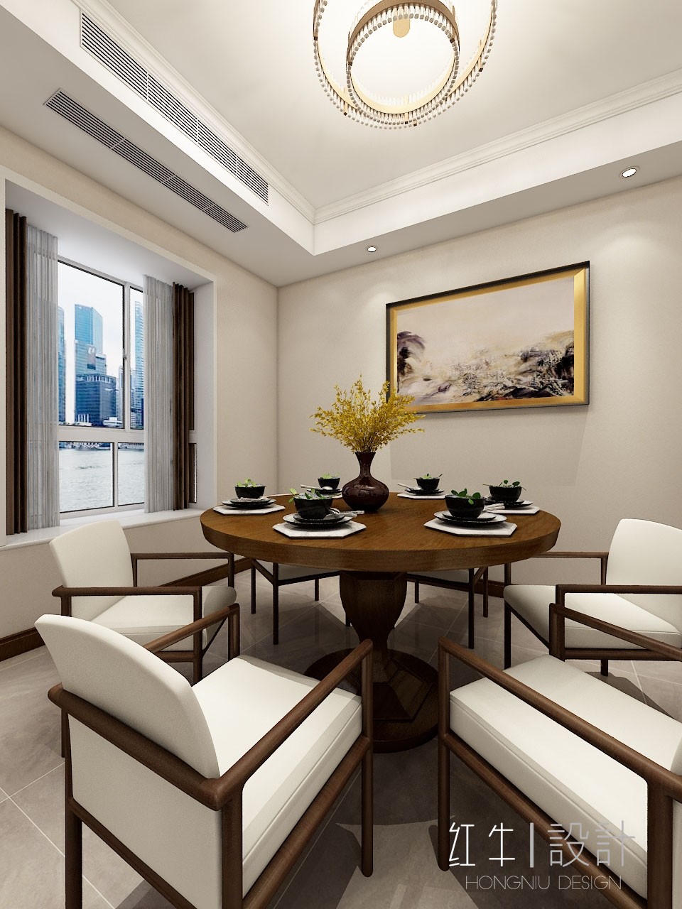 本套方案在滿足功能實用的前提下對原始房型結構進行了局部的改造及布局,客戶對餐廳、廚房要求比較高,原始房間五室用一個房間改造成餐廳。其它整體空間基本合理,以通透性、實用性、舒適性為主要設計思路??蛻粝矚g簡潔明亮不要繁瑣的裝飾,在設計中并沒有不變的俗和雅,關鍵在于對色彩的準確把握冷色是讓人內心感覺平靜的色調,可以中和暖色的輕快感。