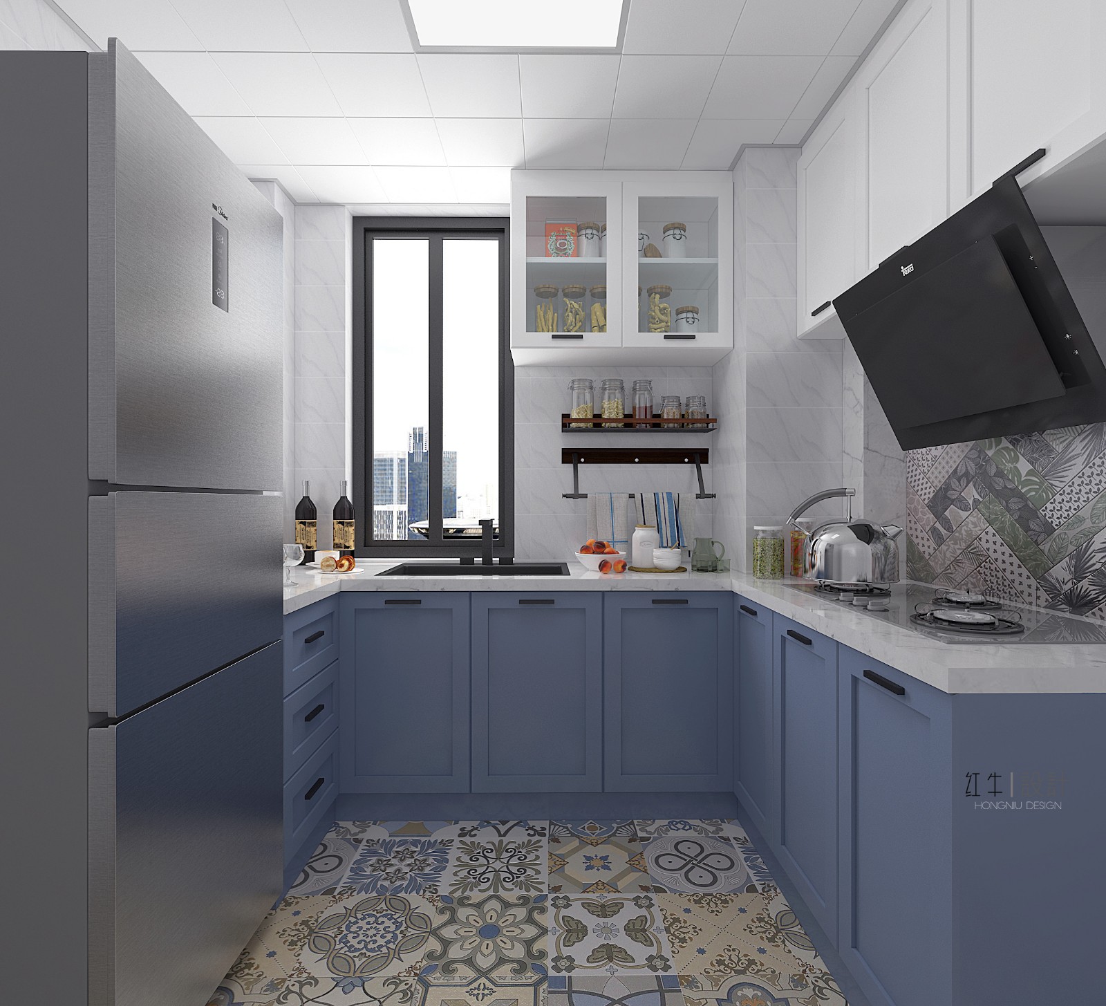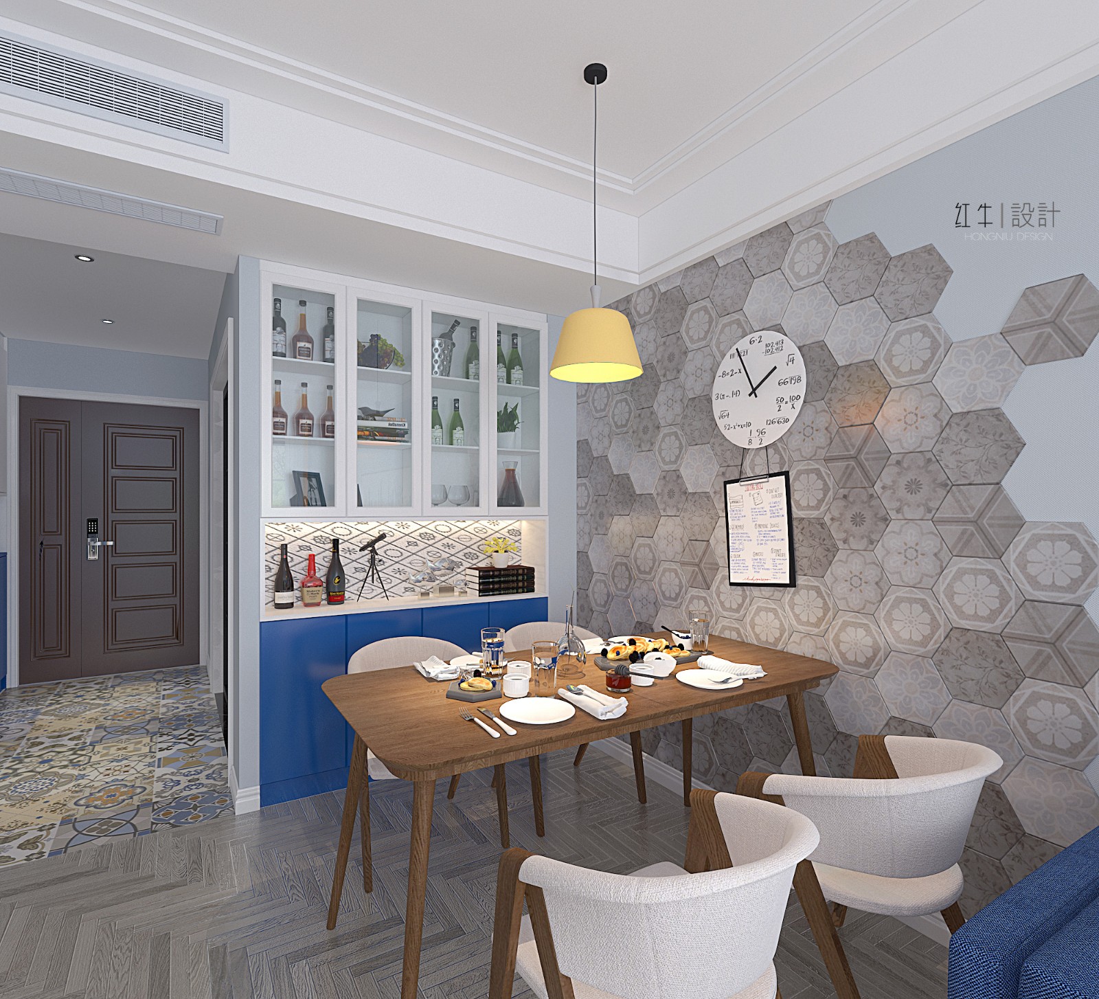 本案業主是位細心的單身男青年,對空間要求和軟裝顏色很有想法,在兩次的設計交流溝通后,我們定義風格為自由簡約的北歐風格,整體色調為高級的藍灰色。 業主性格開朗善于交流,希望家也是呈現輕松活潑的狀態,所以在裝飾上,我們選用了一些多邊形足球磚和異形彩色磚。