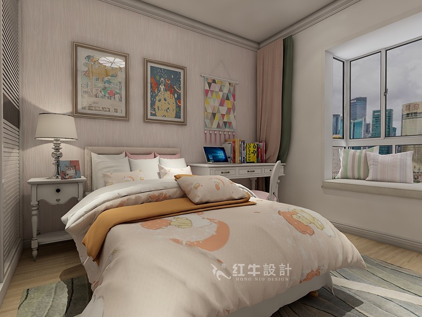 粉色的墻面,搭配充滿活力的裝飾畫(huà),淡雅清新的床品,給人一種溫暖舒適的感受,是兒童房這個(gè)空間該有的詮釋。