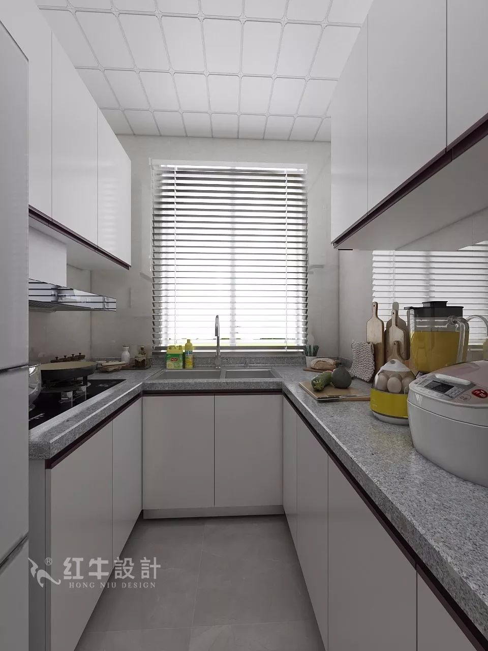 緊湊的U型廚房,存儲空間充足,烹調操作便利,全白的烤瓷面櫥柜讓廚房顯得清爽大方。