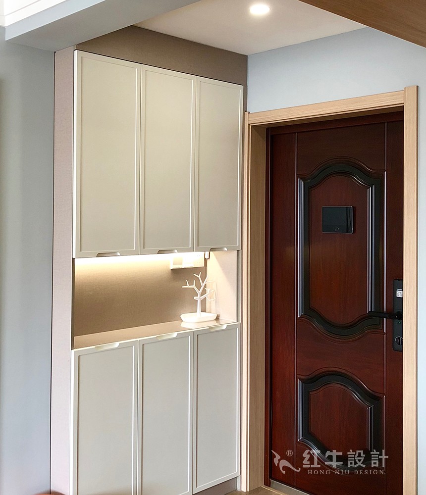 1. 利用進(jìn)門(mén)右手邊的墻體的空間,做了一個(gè)整體的鞋柜。