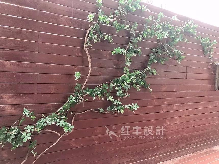 院墻防腐木的處理,綠色藤蔓的點綴,打造極具觀賞價值的院落空間,做飯時可以欣賞院中風光。