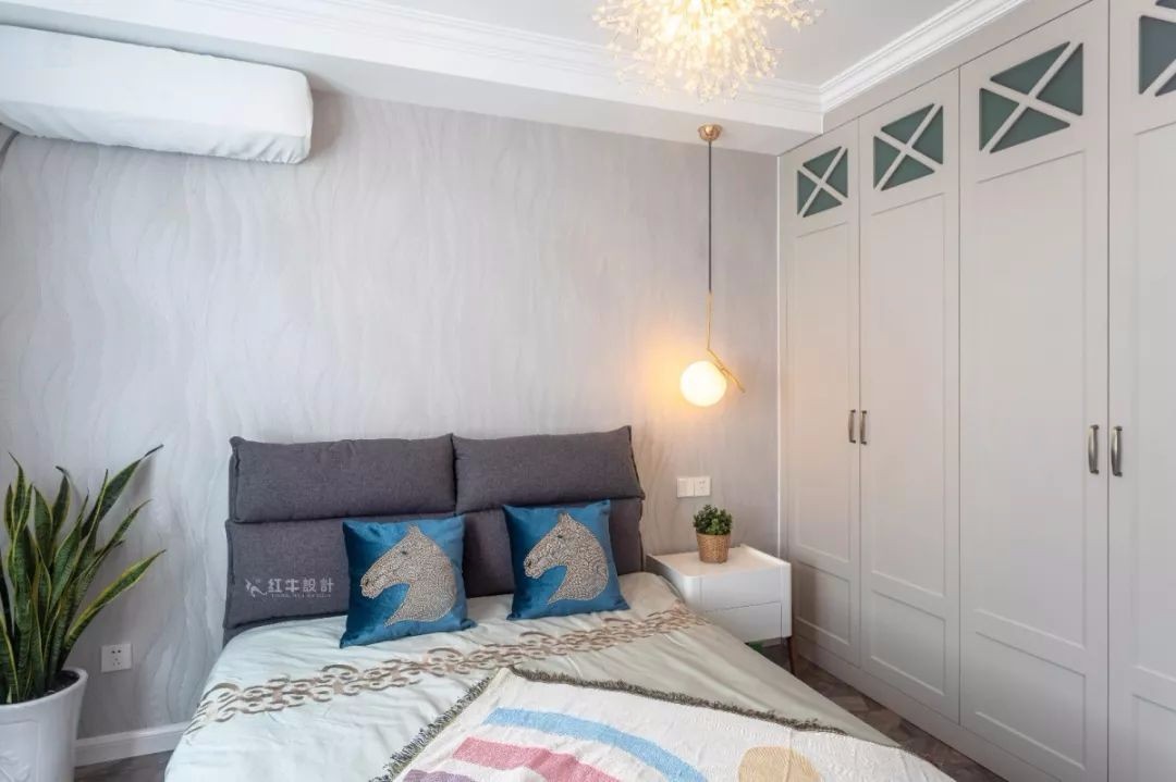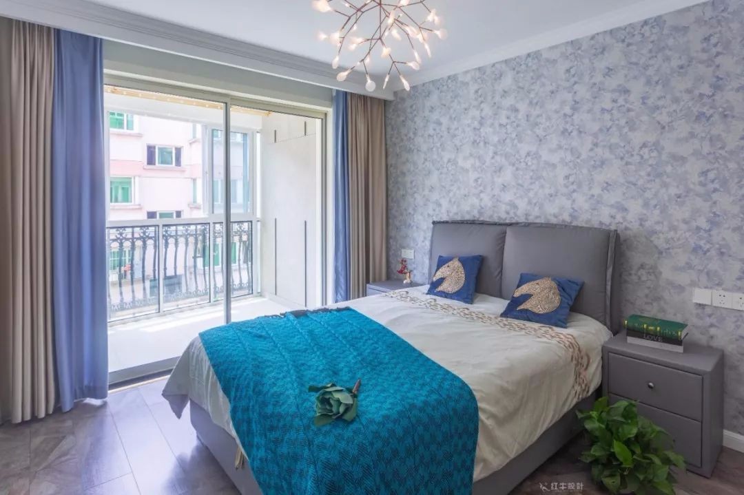 主臥由各式各樣的藍組成,充滿了層次感,視覺感受非常豐富。