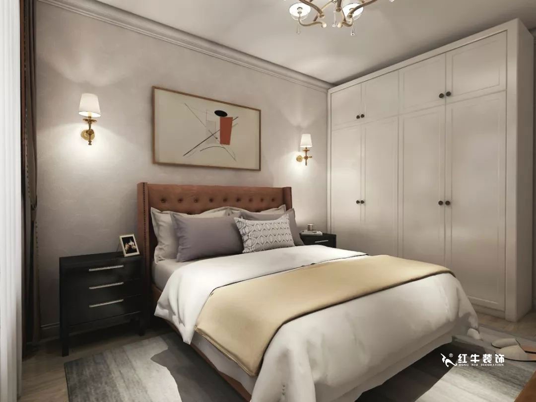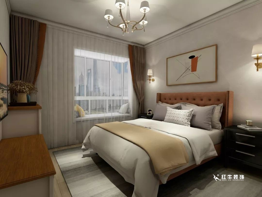 臥室做了一個空間層次的對稱,燈具、家具的選擇奠定了臥室典雅秀美的基礎,桔色的點綴顯露出生機勃勃的氣質。