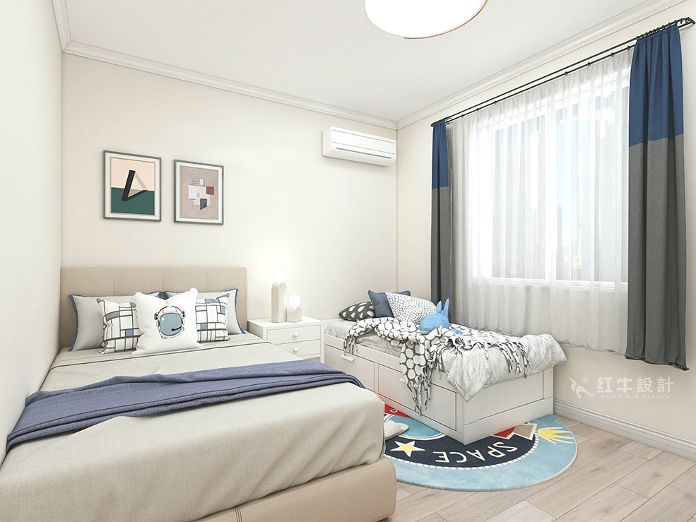 本戶型是二室一廳一衛的戶型,整體戶型相對比較規整,客戶帶一個兒子,三口這家居住。