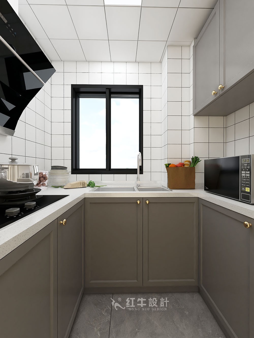 小白磚就像小白鞋一樣,堪稱“百搭”,本案廚房的墻面使用了小白磚,打造出既明亮又有趣的烹調空間。
