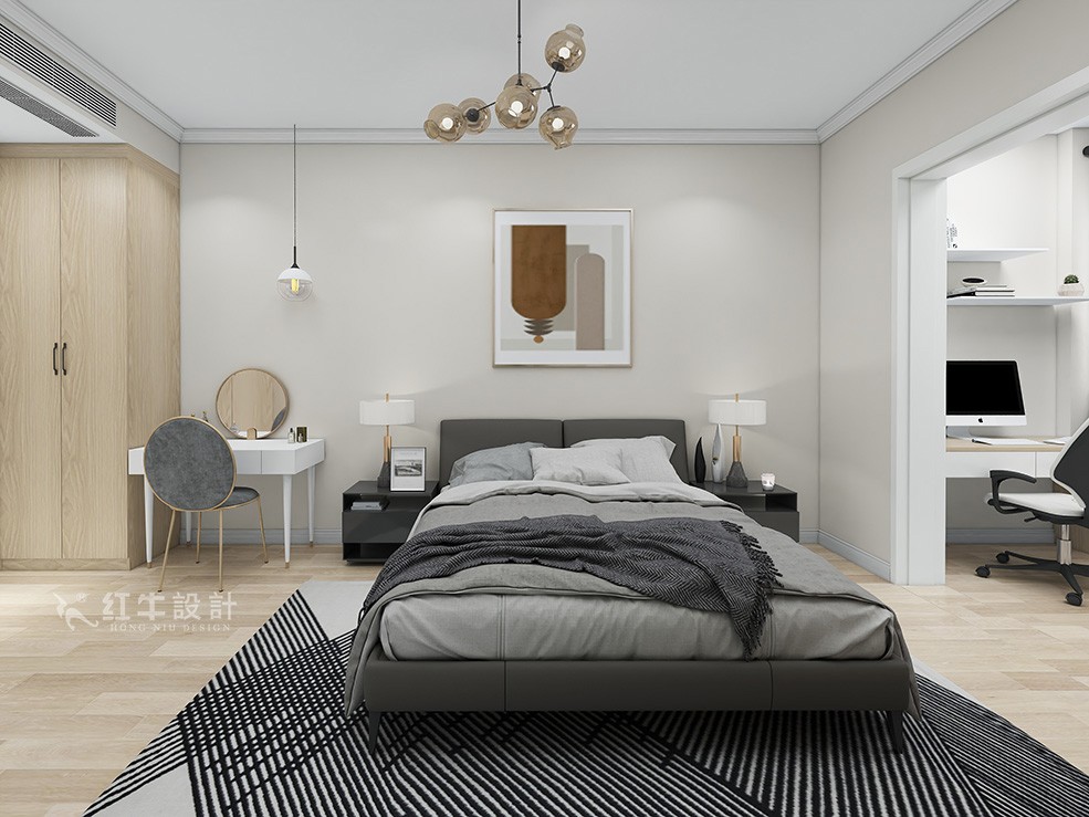 3. 方案整體以暖色為主,整體以簡約時尚舒適,業主一個是教育工作者,一個是警官,平時工作比較忙,所以回家要放松放松心情。