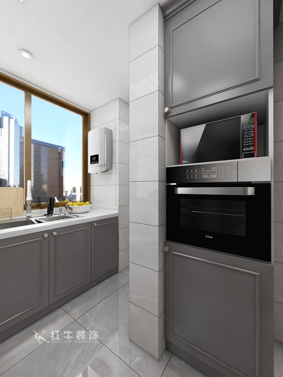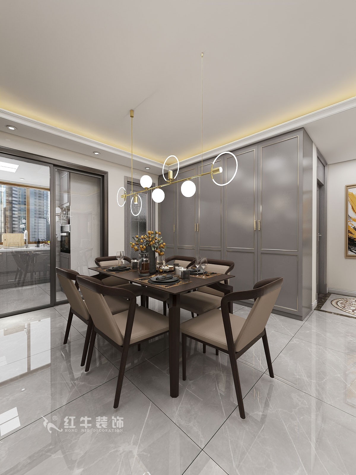 在整個房屋平面布置上餐廳區(qū)域做了很大大的改動,將入戶的的小儲物間和餐廳的小儲物間全部拿掉,還餐廳一片整潔;把原有的廚房空間往后壓縮,原來閑置的后陽臺納入廚房里面,這樣調(diào)整下來,整個餐廳很干凈整潔又增加了收納空間。輕奢是一種優(yōu)雅的生活態(tài)度,包涵奢華的氣質(zhì)內(nèi)涵;整體裝修的硬裝部分以流行灰色為主色,在優(yōu)雅之上稍加的金屬線條裝飾,形成了自然而極致的家居風格。