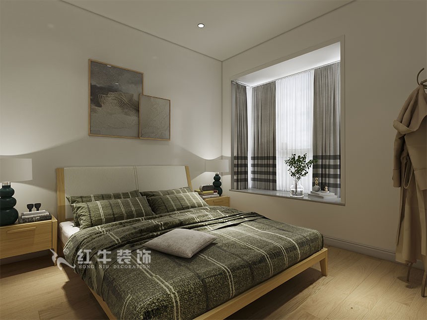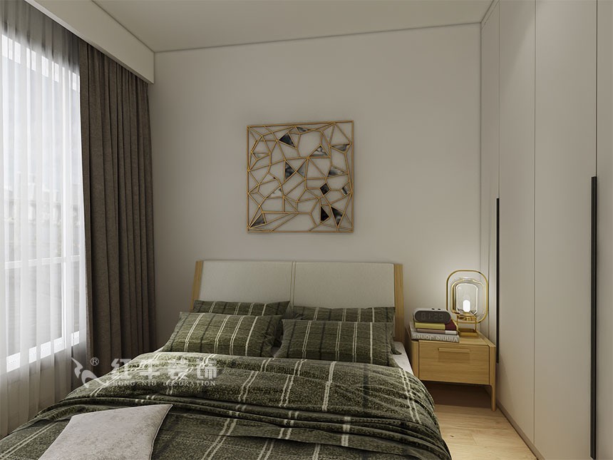 主臥布置方面遵循了對稱的原則,為房屋主人營造一個平衡的氛圍,處于臥室中央的大床看起來就非常柔軟舒適,有助于睡眠。次臥選擇了相似的家具,風格具有延續性。