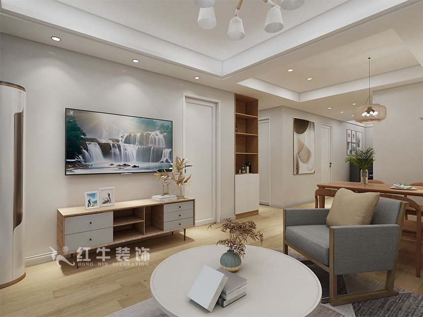 本案設計風格定位現代風格,現在風格中多一些原木色的材質,使得家里不是那么冰冷,同時又非常貼近大自然。房子長期是夫妻二人居住,根據業主的需求,戶型進行了一部分修改,把衛生間換一個方向,這樣可以節省出來大致在2個平方的空間,2個平方納入到次臥室,那么空間就打了很多,另外整個房屋比較長,光線不太足,針對客戶的需求,把北面房間做成了敞開式的書房,這樣不單單書房看起來更大氣,家里的光線和空氣的流通都會好上很多。餐廳墻壁上設計了洞洞板來裝飾,上面還可以放一些小的物品,一舉兩得。