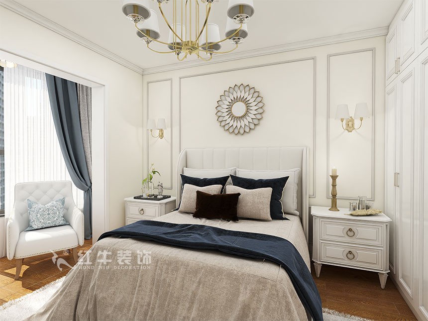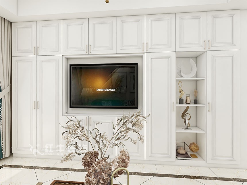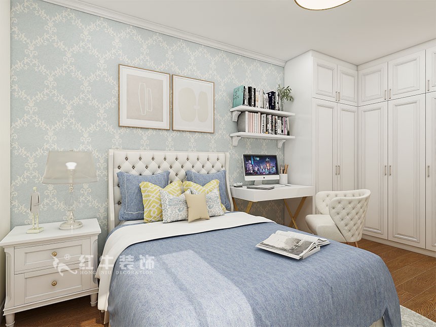 在本案設計中,床、電視柜、書柜、衣柜、櫥柜等都進行了歐式風格的元素添加,營造出了日常居家不同的感覺,低調且高貴的感受不言而喻。