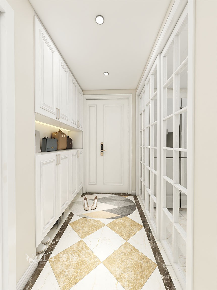 因戶型空間原布局較為復雜且局限,業主需求又為簡歐風格,所以講戶型稍作改動后根據溝通進行軟配上的多元素設計。