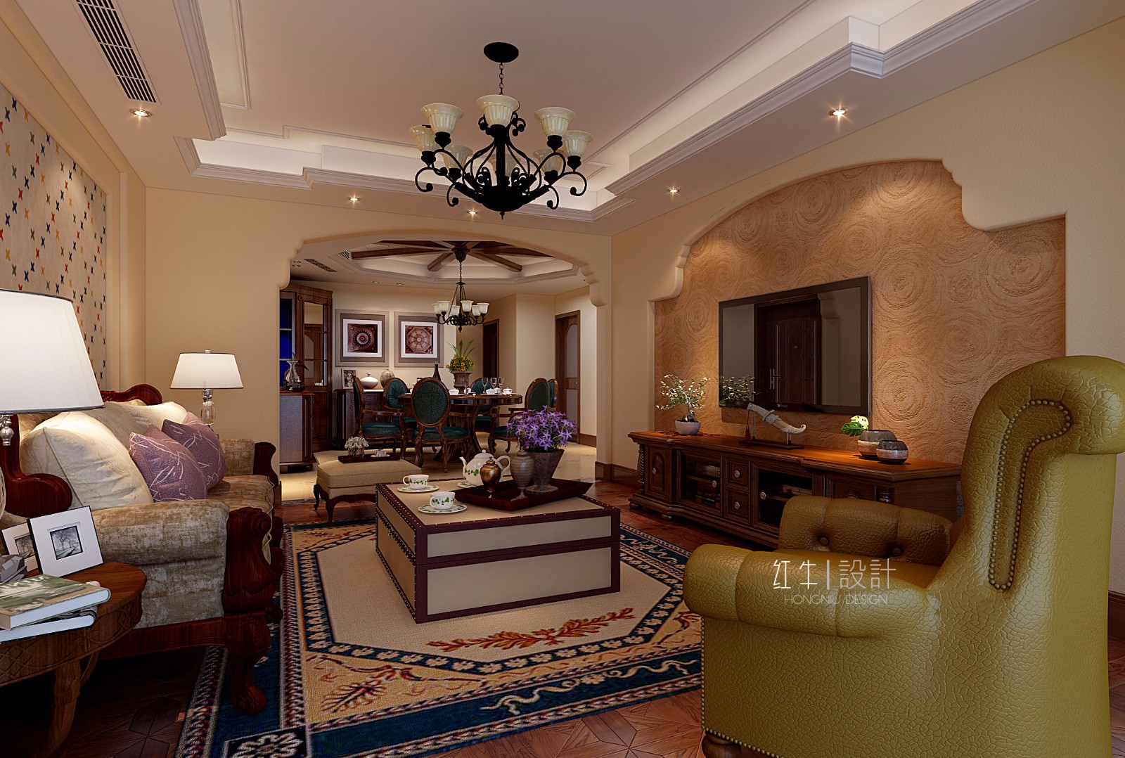 本案繼承了一貫的美式風格,整體用色貼近甲方的需求,亮點之處為空間合理的布局及智能控制系統(tǒng)。由于原始空間的局限性 史之客廳和餐廳區(qū)域略顯小氣。只能后期在軟裝方面重點把控。