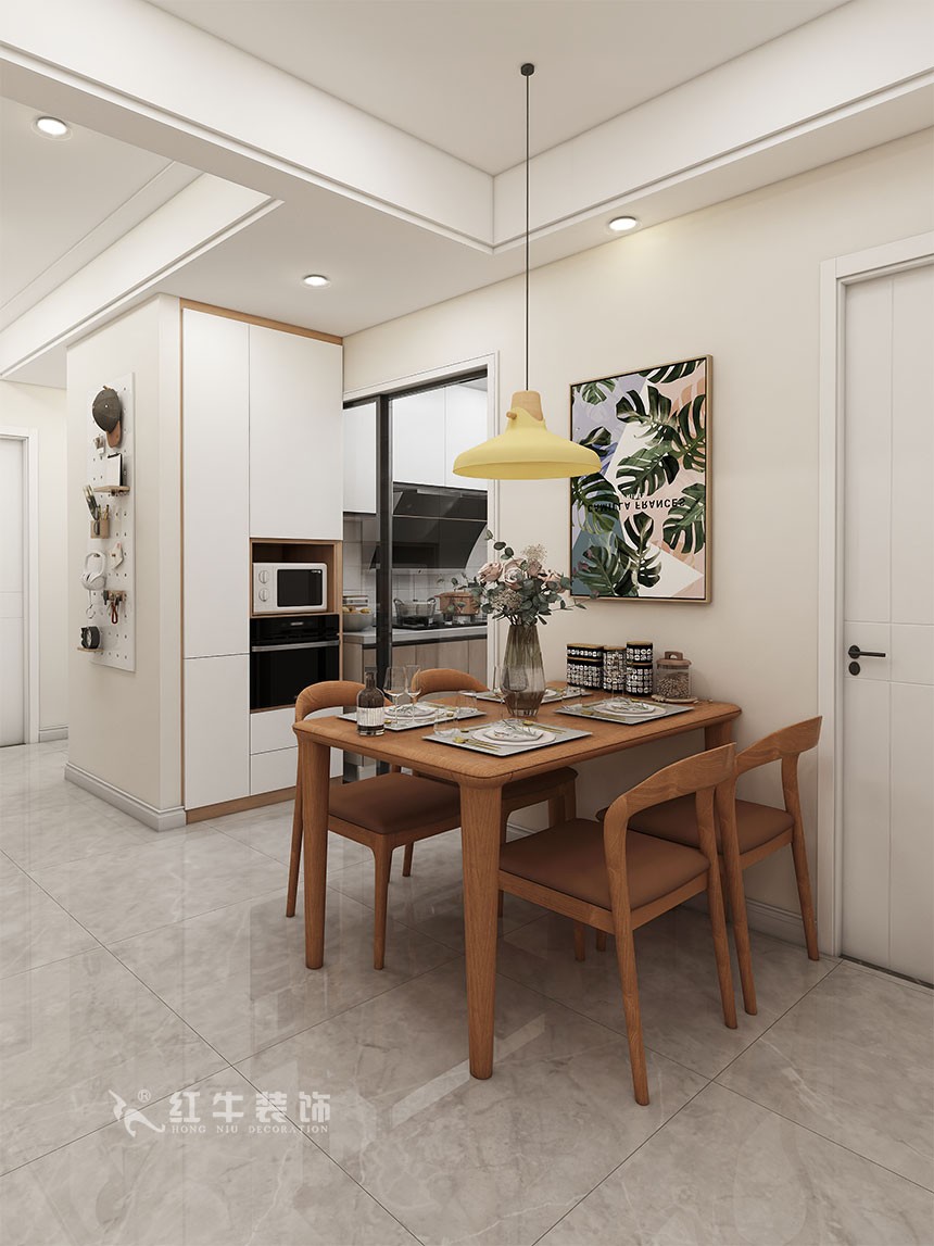 本案設計墻面用的是白色乳膠漆,家具柜體以木色為主,配上白色的門板,讓空間更加溫馨,吊頂層高做高點,燈光設計講究空間的柔和,著重點光源的點綴,讓家更加的明亮溫馨。