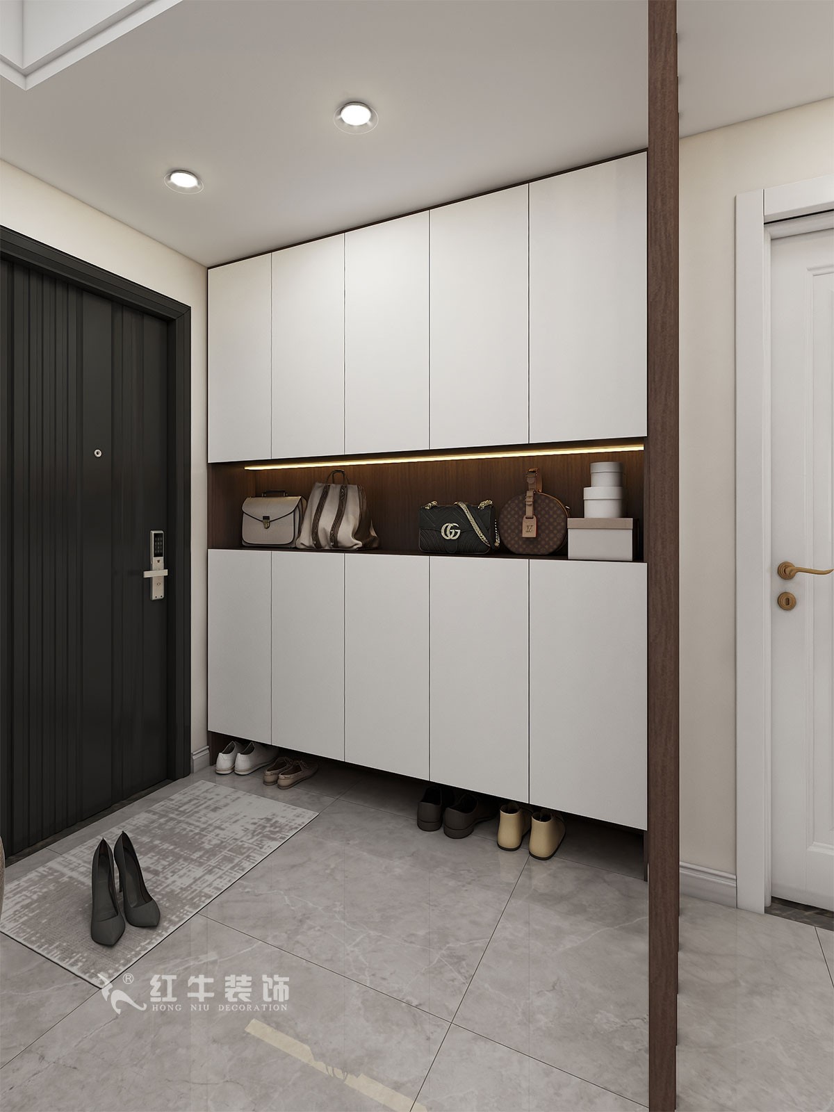 進戶門入戶空間相對狹小,建筑設計中未預留衣帽鞋柜的位置。