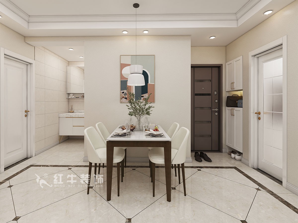 本案簡約風(fēng)格,通過改造增加了入戶鞋柜位置,廚房墻體的改造讓冰箱嵌入進(jìn)去。在空間的設(shè)計(jì)上強(qiáng)調(diào)的是室內(nèi)空間開闊的理念,這樣的設(shè)計(jì)風(fēng)格沒有過多的裝飾物,主要以簡單的線條和裝飾簡潔的造型來體現(xiàn)出現(xiàn)代簡約型的設(shè)計(jì)。