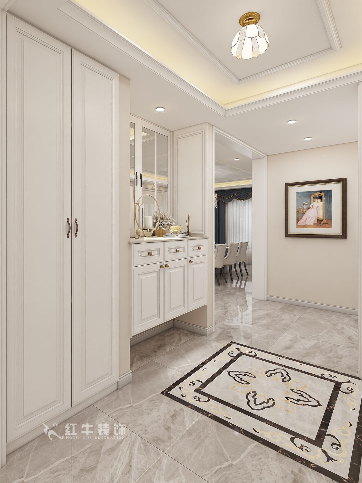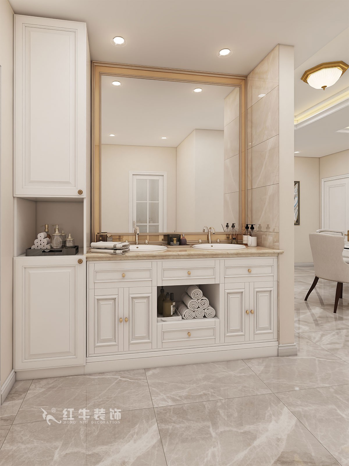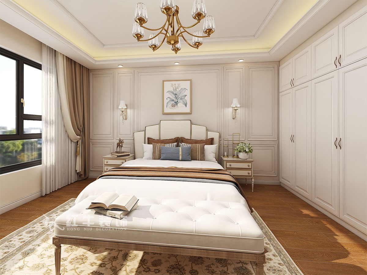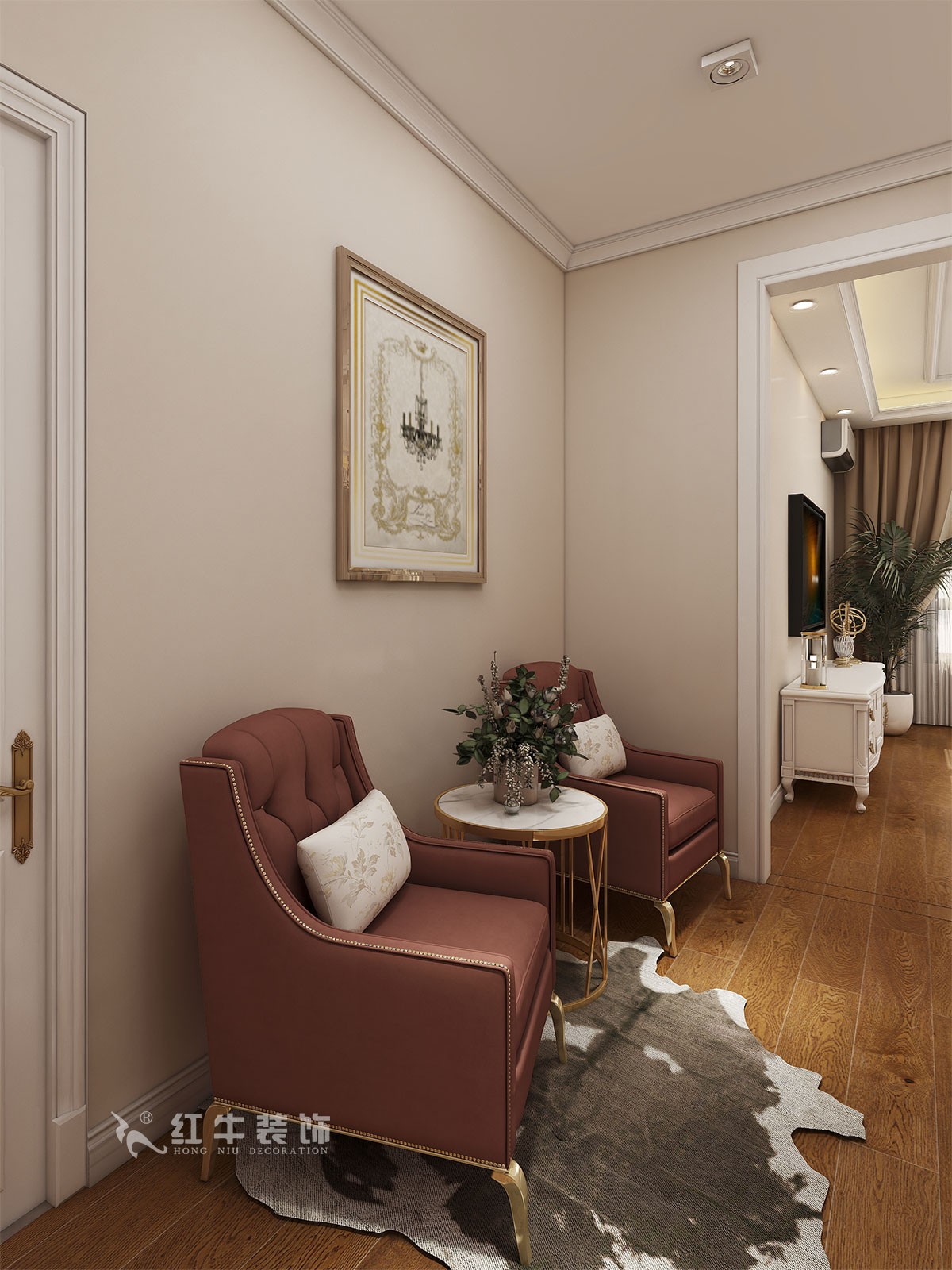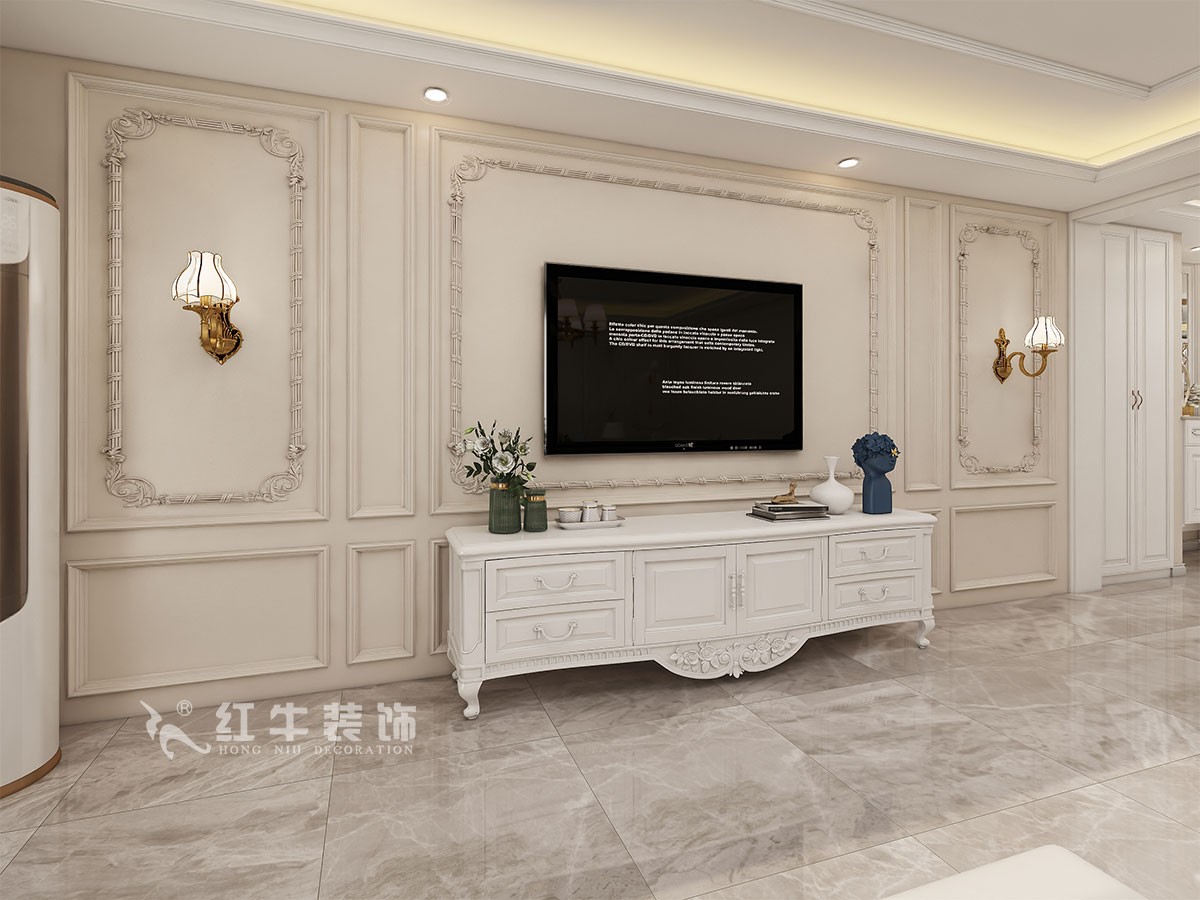 此房屋裝修規劃是以后期業主家庭聚會的房子,業主對美要求有自己的見解,希望未來的房子有顏色,有氣質,最終確定了美式,而本案在設計時其特色是將設計的元素、色彩、照明、原材料都體現美式的大氣,但是對材料的色彩質感要求很高。因此,無論總墻面,還是頂面都用美式線條做裝修,配合家具的曲線,讓整個空間顯得柔美。