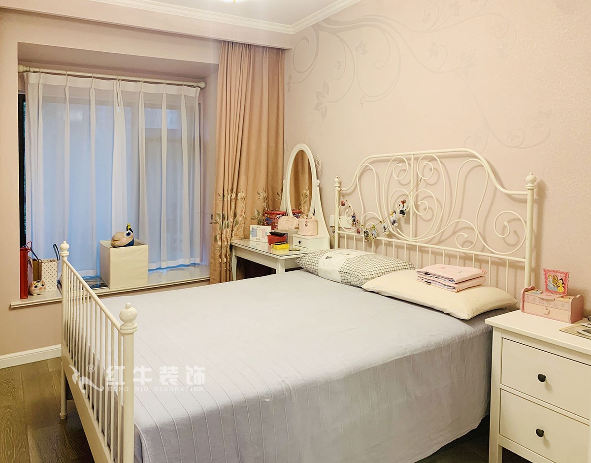 這間是次臥,梳妝臺是必不可少的家具,它的造型優雅、還散發著一種浪漫氣息。