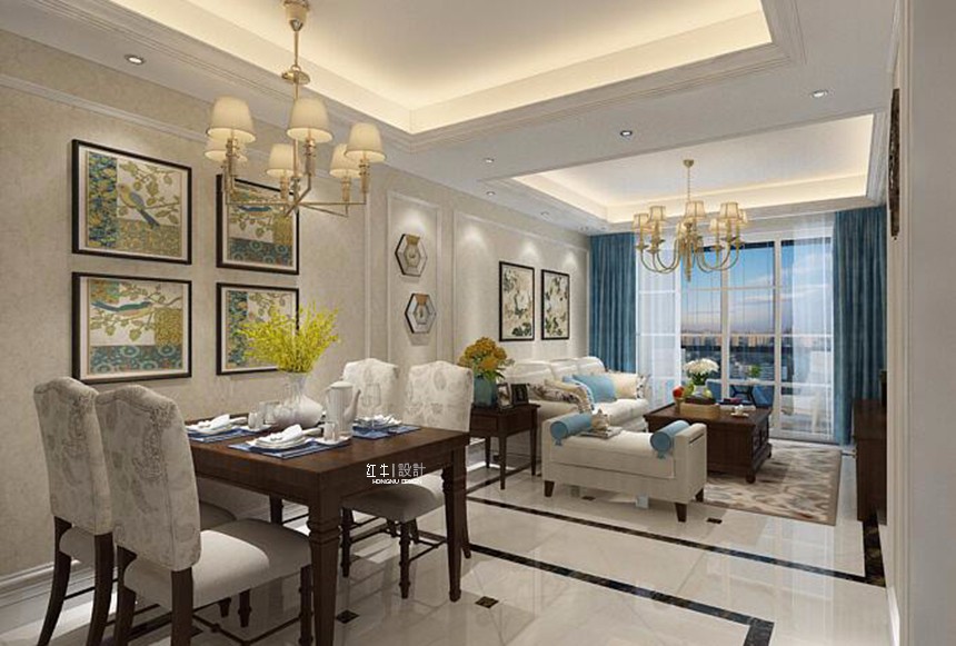 此案設計采用了美式風格,首先進行合理的功能區域劃分,在滿足儲物需求的同時,要讓每個空間都能通風并采光。